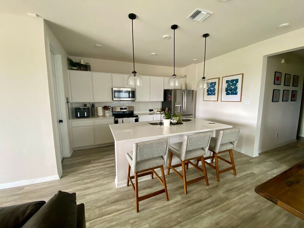 Spacious and inviting, this 4-bedroom, 3-bath home offers the perfect blend of comfort and functionality. Featuring a private junior suite, it’s ideal for guests, extended family, or a flexible home office setup. The heart of the home is a large, open kitchen complete with upgraded appliances, a refrigerator, and a bar-style sink area that provides additional seating—perfect for casual dining or entertaining. The living room is filled with natural light thanks to expansive bay windows, creating a bright and welcoming atmosphere. Additional highlights include a water softener, a generously sized covered patio for outdoor relaxation, and a desirable corner lot that offers extra space and privacy. This home truly has it all—space, style, and thoughtful upgrades throughout.