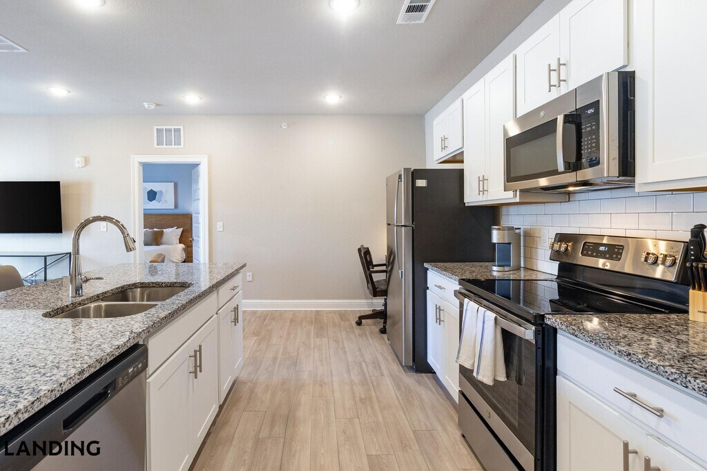 Landing is a top-rated, fully furnished apartment network with thousands of homes across 250+ U.S. cities. With premium amenities, a mobile app to manage your stay, and 24/7 support. Our apartments have everything you need for monthly and longer stays. 6-Month+ Stay base rent: starts at $2383/mo 12-Month+ Stay base rent: starts at $2158/mo Landing's apartments at The Waters at Redstone are designed for comfortable, easy living, with the ability to stay as long as you like. All Landing apartments include: - Fast Wi-Fi - Stylish furnishings - Fully-stocked bathroom - Smart TVs - Comfortable bed - Professionally cleaned - Guest support Stay longer for cheaper! The longer you stay, the bigger your discount. Price advertised is for a 12-month stay, including all utilities and fees, and may vary based on availability. We manage multiple units at this property. While all feature a similar style and furnishings, the layout and specific design elements may vary slightly from the photos provided. Some of the nitty-gritty: a background check and proof of income are required; we're completely smoke-free; pet-friendly options are available; parking is subject to availability.