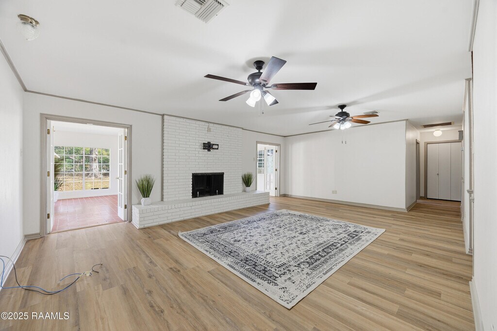 Welcome to 301 Estainville -- a home that truly has it all!Centrally located in the heart of Lafayette, you're just minutes from local shopping, dining, and conveniences. Situated on a HUGE 100x160 corner lot, this 3 BED/ 2 BATH home offers both space and style with a beautifully updated interior featuring all-new vinyl plank flooring, slab granite countertops, and a neutral color palette that compliments any decor.Inside, you'll love the flexibility of the spacious living area featuring a wood burning brick fireplace with French doors on either side leading into a HUGE sunroom lined wall-to-wall with windows that flood the space with natural light -- perfect for relaxing, entertaining, arts and crafts or a kids' playroom! The kitchen offers plenty of counter and cabinet space, updated appliances and an eat-in breakfast or dining area plus a peninsula for extra seating. All the bedrooms are extra large and offer tons of closet space!Important updates include a 3-year-old Trane A/C unit and a roof that's only 6 years old -- offering peace of mind for years to come.Out back, enjoy a Huge fully fenced yard with double-gated rear yard access PLUS a large workshop and separate storage shed for all your extras.