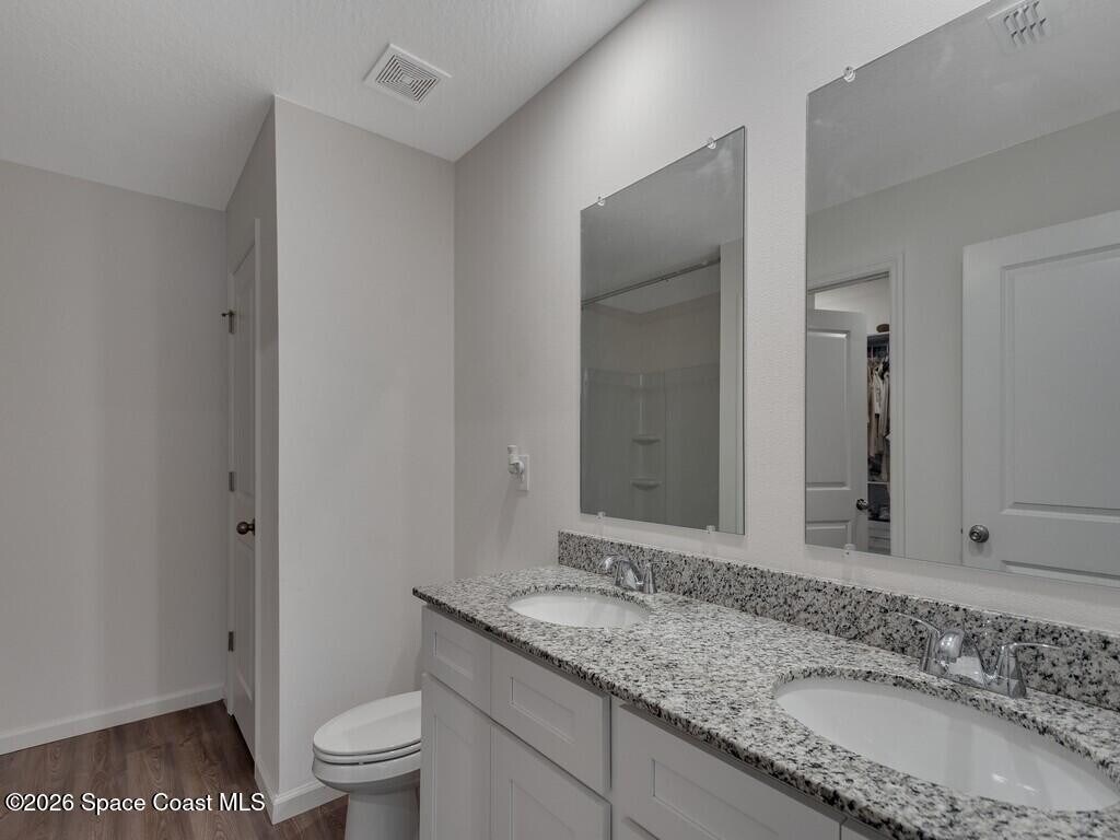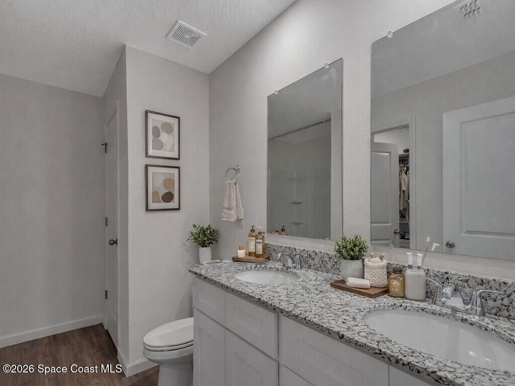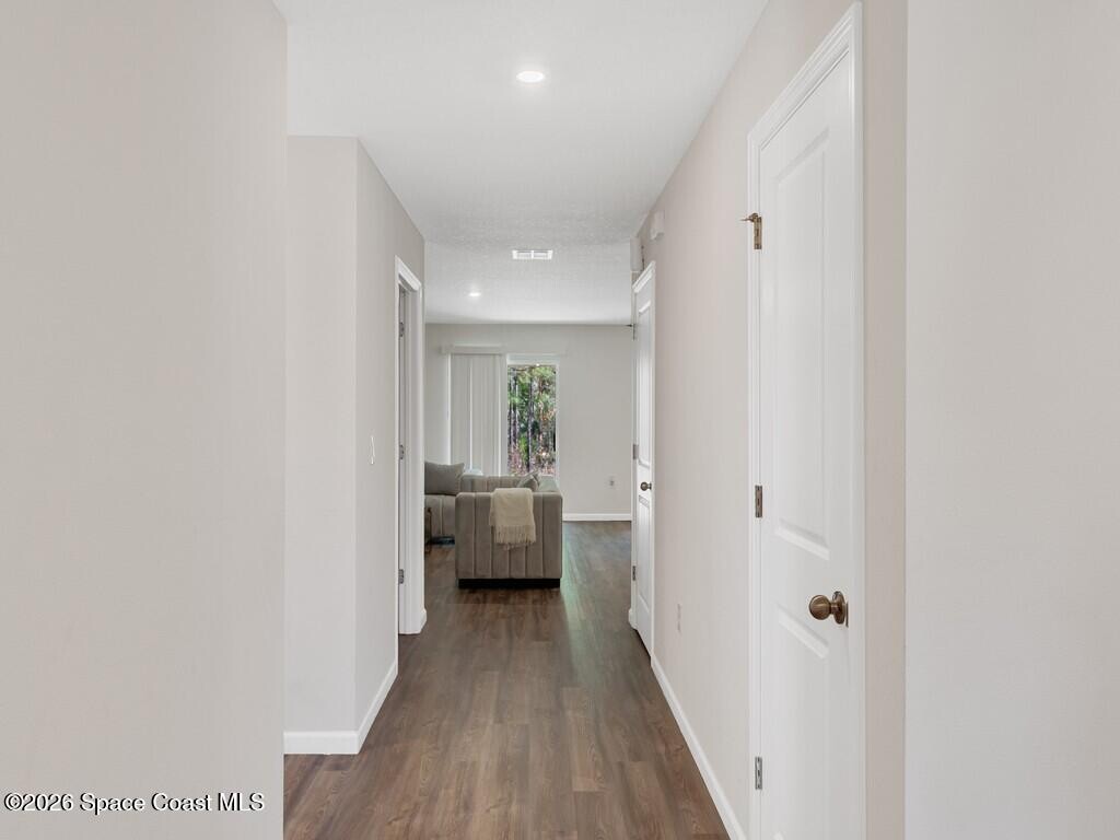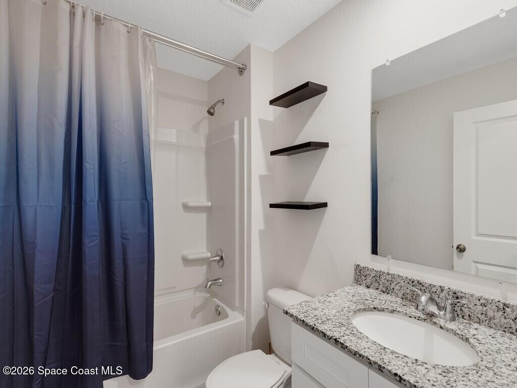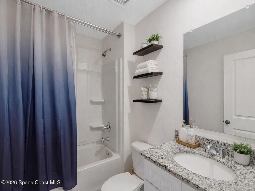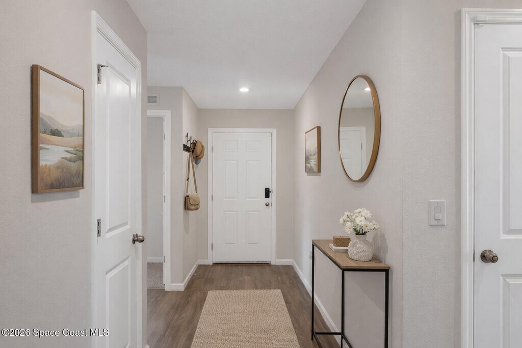Spacious 3-bedroom,2-bath corner lot home located in a quiet neighborhood of Palm Bay. This well-maintained property features an open-concept layout with the living,dining,and kitchen areas flowing seamlessly together,creating a bright and airy atmosphere filled with natural light. The kitchen boasts white cabinetry,granite countertops,stainless steel appliances,and a pantry,perfect for cooking and entertaining. Versatile den with a door works perfectly as a 4th bedroom or office space. The split-bedroom floor plan offers added privacy,with a generously sized primary suite that includes a large walk-in closet and dual sinks. Enjoy a spacious yard with a serene wooded backdrop of tall trees,providing a peaceful and very private outdoor setting. Additional highlights include a two-car garage & No HOA- Quick Approval! MLS # 1070844