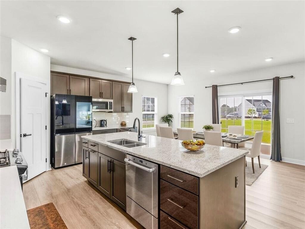 Rare opportunity to rent a like-new home that offers space,comfort,and style in a quiet neighborhood,conveniently located near,I-75,Tanger Outlets,Shoppes at Locust Grove,and plenty of shopping and dining options. The main level features a flex room with French doors that can be used as a private study/office,a guest bedroom with a full bath,and a large open concept living area. The great room,dining area,and chef's kitchen flow seamlessly together,creating a perfect space for family gatherings. The kitchen is a showstopper with upgraded high-end stainless-steel appliances,quartz countertops,and a walk-in pantry. Upstairs,you'll find a spacious bonus room,a huge master suite with a large walk-in closet,and a luxurious master bath with double vanities and an oversized shower with two showerheads. Three additional generously sized bedrooms share a large hall bath with a double vanity. The upstairs also includes a full laundry room with washer and dryer provided. Enjoy outdoor living on the large,covered patio - perfect for cookouts,entertaining,or simply relaxing with a cup of coffee. This home is situated on a beautiful level lot and includes a double garage. Perfectly blending convenience and comfort,this property is barely lived in and is move-in ready! One small pet will be considered Schedule your viewing today!