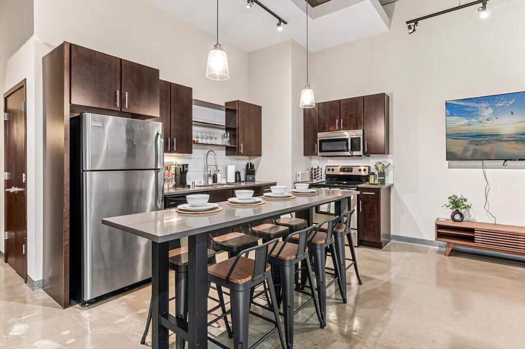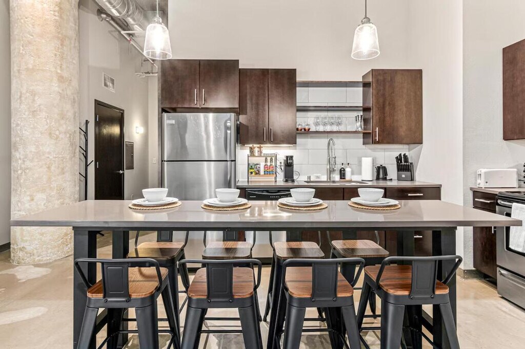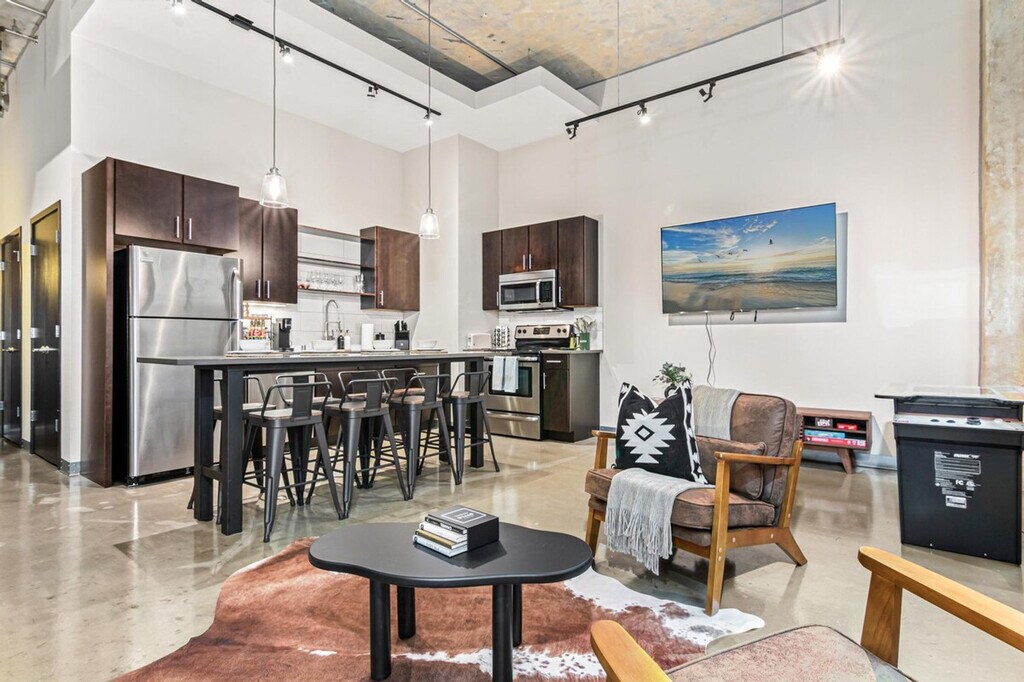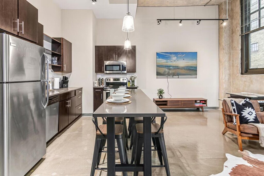 The advertised rate of $5,985/month is the lowest available price, based on a 1 month(s) stay with a move-in date of April 15, 2026. Rates vary depending on the duration of stay, season, and other parameters. For exact pricing and additional pricing components, please visit our website and enter your desired move-in and move-out dates. The rate is applicable when billed upfront; it can be higher if billed in multiple payments. Unwind and feel at home in this stylish 2-bedroom, 1-bathroom loft-style apartment in Downtown Minneapolis' North Loop. This apartment offers a chic and spacious urban escape. This thoughtfully designed space combines modern comfort with industrial charm and offers everything you need for a comfortable and carefree stay. The apartment features a fully equipped kitchen with all major appliances and a coffee station, a 65" 4K smart TV, a washer and dryer, and a spacious full bathroom stocked with essentials and fresh towels. Free parking is available in a surface lot near the building (3 min walk). This centrally located apartment is steps away from Target Field and US Bank Stadium, as well as restaurants, bars, shops, and attractions. Direct public transit is available to the airport, and the apartment offers convenient access to major roads and highways. Guests must be at least 21 years old to book and check in, and ID verification is required. A front door camera (exterior only) and noise monitoring are in place for guest safety. Tampering with cameras leads to cancellation and removal without refund. Bedroom 2 includes a standing desk and ergonomic chair. Enjoy access to a 24/7 gym. Registration Number: LIC-128173 [SI]