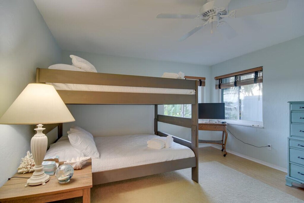Feel at home in this 3-bedroom, 2-bath waterfront house in St. Pete Beach, offering a laid-back retreat with white-sand beaches and emerald-green waters. This house features 2 Smart TVs, a full kitchen, and a private outdoor oasis. The kitchen is equipped with a stove/oven, microwave, dishwasher, refrigerator with ice maker, dishware/flatware, coffee grinder, drip coffee maker, and toaster. Additional amenities include a washer/dryer, linens/towels, central air conditioning/heating, grab rails in the shower, a dining table, a breakfast table, and an en-suite bathroom. This house is pet-friendly with a $50 fee. Close to attractions like the Salvador Dali Museum and the beautiful Sunken Gardens, this house is the ideal home base for your beach getaway! The minimum age to book is 25 years old. Early check-ins and late check-outs cannot be accommodated. A Ring doorbell device with an exterior security camera facing the front outdoor entry is installed. No smoking, events, parties, or large gatherings are allowed. Guests will have access to the entire property via keyless entry. [SI]