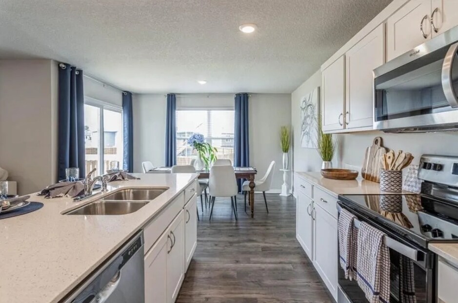 This twinhome offers 4 bedrooms, 2.5 bathrooms, and an open-concept design that's perfect for modern living. The main level features solid surface flooring throughout and a gourmet kitchen with a large island, perfect for entertaining. Upstairs, the luxurious primary suite includes a walk-in closet and an ensuite bathroom with double vanities. Three additional bedrooms, a full bathroom, and a convenient laundry room with a washer and dryer included complete the upper level. Pet Friendly: Bring your furry friends! Pets are welcome in this beautiful home. Tenant Responsibilities: Lawn care, snow removal, and all utilities are the tenant's responsibility. Don't miss out on this incredible rental opportunity! Schedule your showing today and experience the perfect blend of comfort, convenience, and technology.