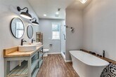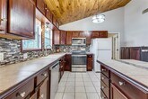 Charming country home on large corner lot just feet away from the town square! This home features an open concept with original hardwood floors, large master suite & two living areas. When first entering, you will notice the large wood beams that draw your eye & add that special touch. The master bath features a double vanity with a freestanding tub & large walk-in shower. The kitchen features a large island & plenty of counter & cabinet space. The home sits on just over a half acre & features a large backyard with plenty of room for your babies or fur babies to run & play & a covered patio that is perfect for entertaining. This home is one of a kind & you can feel the love that this home has held from the moment you step inside. The garage or its apartment are not included. It is currently leased.
