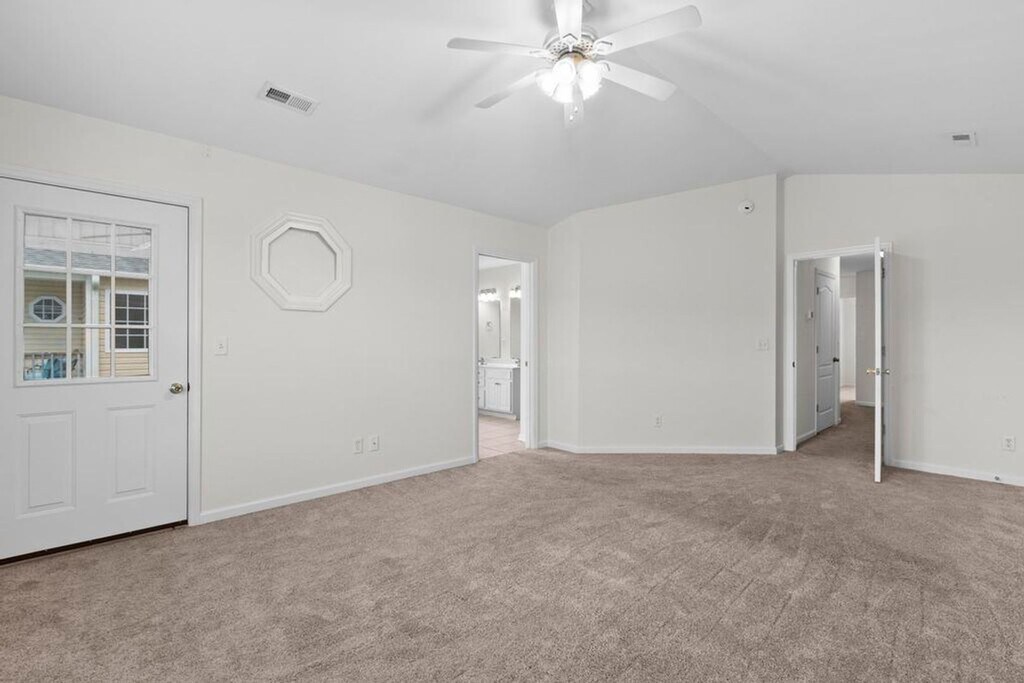 Wonderful 3BR/2.5 Bath townhome conveniently located within walking distance to a ton of Surf City's local shops, and restaurants with additional area growth coming. Not to mention right over the bridge our stunning Topsail Island beaches. Across the street from your home is the clubhouse and community pool. Open concept downstairs living area with kitchen equipped with 5 burner gas stove, pantry and large eat-in breakfast bar. Upstairs you will find the private Master Suite with vaulted ceilings, large walk-in closet, private screened in deck and en-suite featuring a dual vanity, jacuzzi tub and separate walk-in shower. Single car garage with additional storage closet. Lawn cutting included. 2 Pets with owner approval, $150 non-refundable pet fee per pet, no bully breeds.