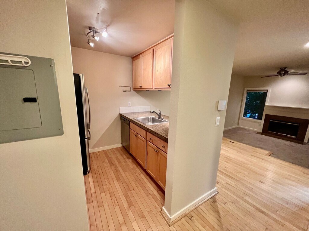 Nestled in trees for privacy, this townhouse style condo features vaulted ceilings and is light-filled with an open floor plan on the main level living areas- updated kitchen with stainless steel appliances, granite counters, hardwood floors, sunken living room, wood-burning fireplace and new deck off the living room plus 1/2 bath. The upstairs features two bedrooms, a full bathroom and washer/dryer. This conveniently located home is across the street from David Rodger's Park and a few blocks from Queen Anne Bowl. 10 minute walk to the top of Queen Anne, and a short drive to Fremont or Ballard. Less than half a mile to Seattle Pacific University. Easy commute by bus to downtown, UW, SPU, South Lake Union, and hospitals. There are two dedicated parking spots: one directly in front of unit, and one other covered spot; $100 per month. Lease Terms: - 12 or 18 month lease available. - Tenant is responsible for electricity. - Tenant pays $50 per person, per month for water, sewer, garbage - Parking: 2 available spots $100 per month. - $55.00 Application Fee per applicant over the age of 18. - Security Deposit of one month's rent and last month's rent is required. Pay within 6 months. - Pet rent $50/ month for dogs, $35/ month for cats. Pet screening via is required. Pets subject to owner approval. - No application(s) accepted until the potential tenant(s) have toured the property in person by appointment only with a Maple Leaf Management LLC agent. - All emails/calls will be considered pre-screening of potential tenants.