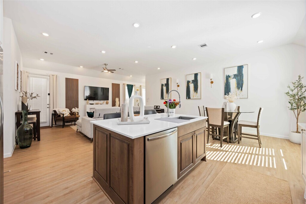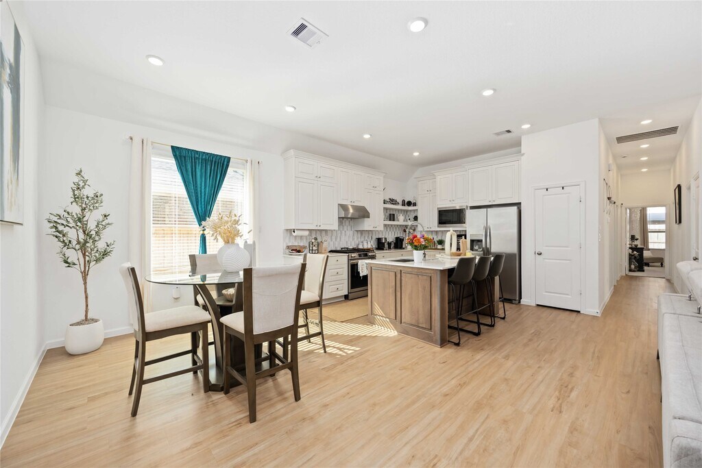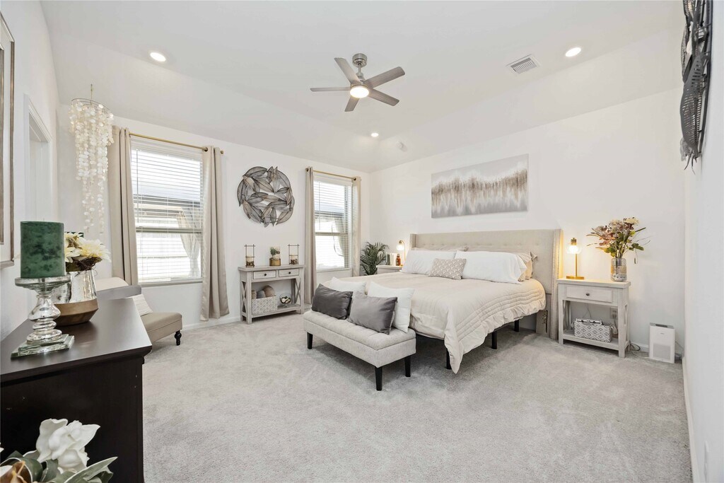 This stunning like new 4-bedroom,2.5-bath home offers contemporary design and family-friendly comfort in one of the area’s most desirable new communities. There is an option to rent the home fully furnished. Step inside to a welcoming foyer that opens into a spacious open-concept layout featuring the family room,dining area,and modern kitchen – perfect for entertaining or everyday living. Just off the foyer,you’ll find a convenient utility room and a guest half bath. The owner’s suite is privately located at the back of the home,complete with a luxurious en-suite bath. Three additional bedrooms and a full bath provide ample space for family or guests. Sunterra residents enjoy incredible resort-style amenities,including the breathtaking crystal-clear lagoon,playgrounds,walking trails,and more – all within a community known for its excellent schools. Don’t miss the opportunity to make this beautiful single-story home yours and enjoy the lifestyle Sunterra has to offer! MLS# 85591100