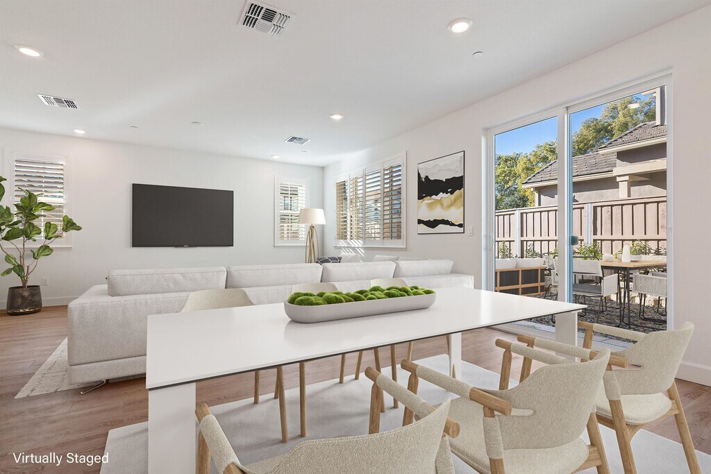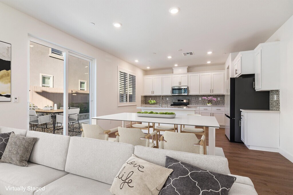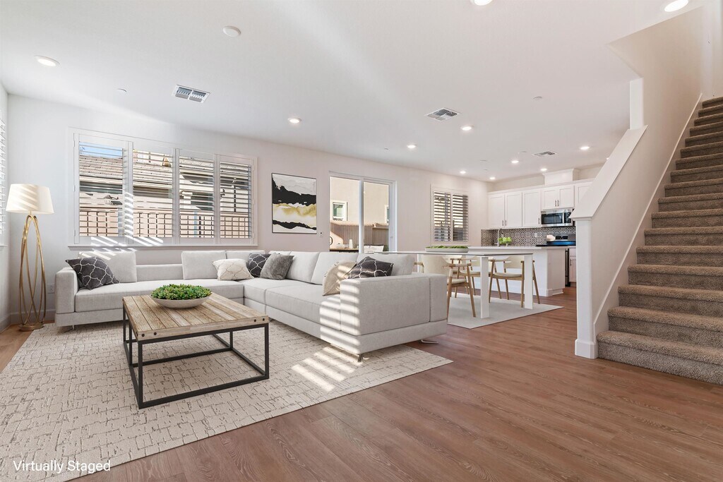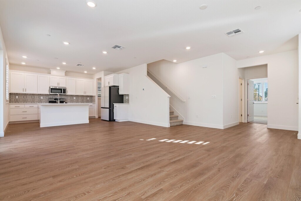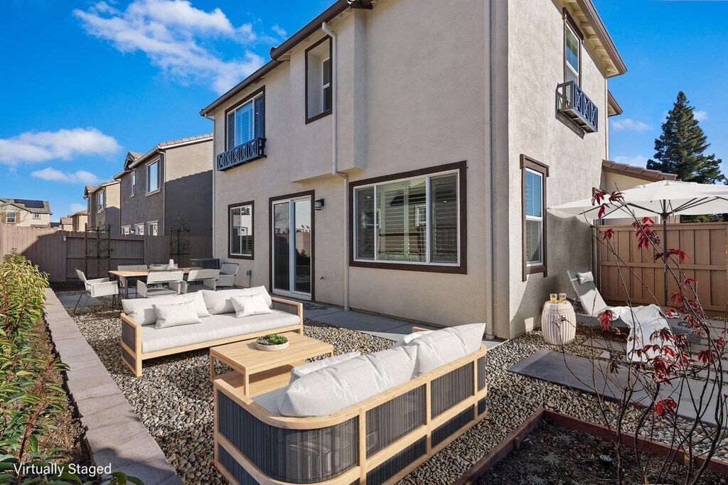 This stylish four-bedroom,three-bathroom home blends comfort and contemporary design. The two-story residence sits on a corner lot in a peaceful cul-de-sac with views of Dreamers’ Park—an idyllic backdrop for daily living. The main level features a sunlit,open-plan great room that seamlessly integrates living,dining,and kitchen areas,ideal for modern lifestyles. A generous island anchors the kitchen,perfect for casual meals and connection. Natural light pours in through numerous windows,and sliding glass doors open to a beautifully landscaped,fully fenced yard that wraps the home—offering privacy and ease with low-maintenance plantings including bay laurel,Meyer lemons,red maple,and jasmine. One bedroom and a full bath on the main floor add flexibility and convenience. Upstairs are three additional bedrooms,including a spacious primary suite with ensuite bath,another full bath,and a separate laundry room. Amenitites include interior access to the two-car garage,a fire sprinkler system,air conditioning,solar panels,and easy access to shopping,schools,and major highways. A perfect lease opportunity in one of Vacaville’s most appealing newer communities.