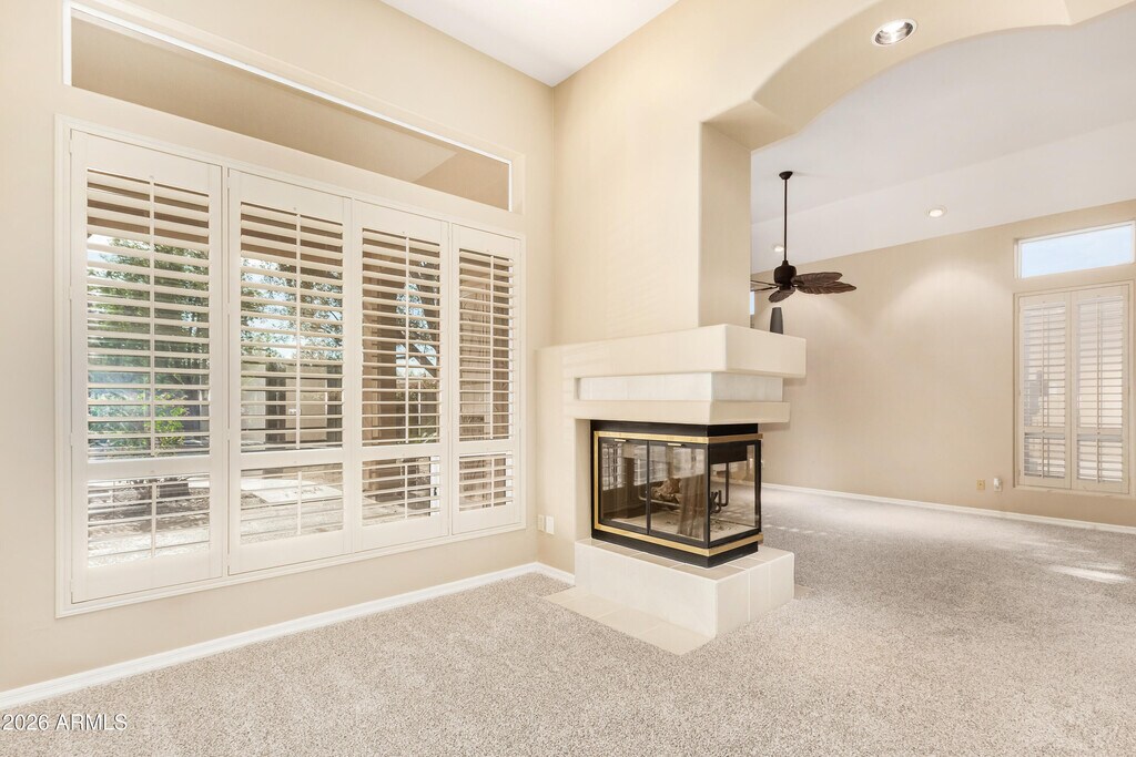 A Private Hillside Retreat with Resort-Style Living in Ahwatukee Beautifully updated semi-custom home located in a quiet no-outlet hillside setting offering exceptional privacy. Spacious floor plan with soaring ceilings,architectural columns,and three fireplaces. Fresh interior paint,new carpeting,and luxury LVP flooring throughout. Main level features formal living and dining rooms,family room with wet bar,and a private primary suite with patio access and expansive dressing/closet area. Upstairs guest suite with loft,bedroom,and full bath provides ideal separation. Resort-style backyard includes diving pool,built-in BBQ,covered patio,fountain,walkways,and mountain backdropperfect for entertaining and outdoor enjoyment. Located in the highly acclaimed Kyrene School District and Tempe Union High School District. Community amenities include three pools (one heated),spas,tennis,pickleball,basketball,parks,and walking trails. Updates photos coming soon .