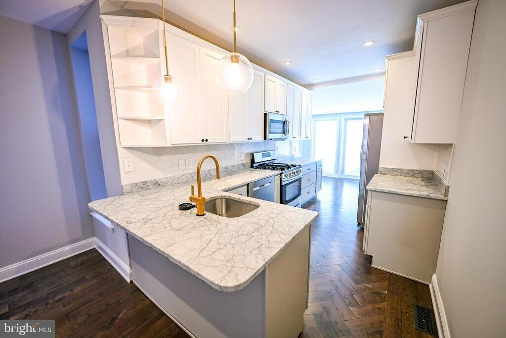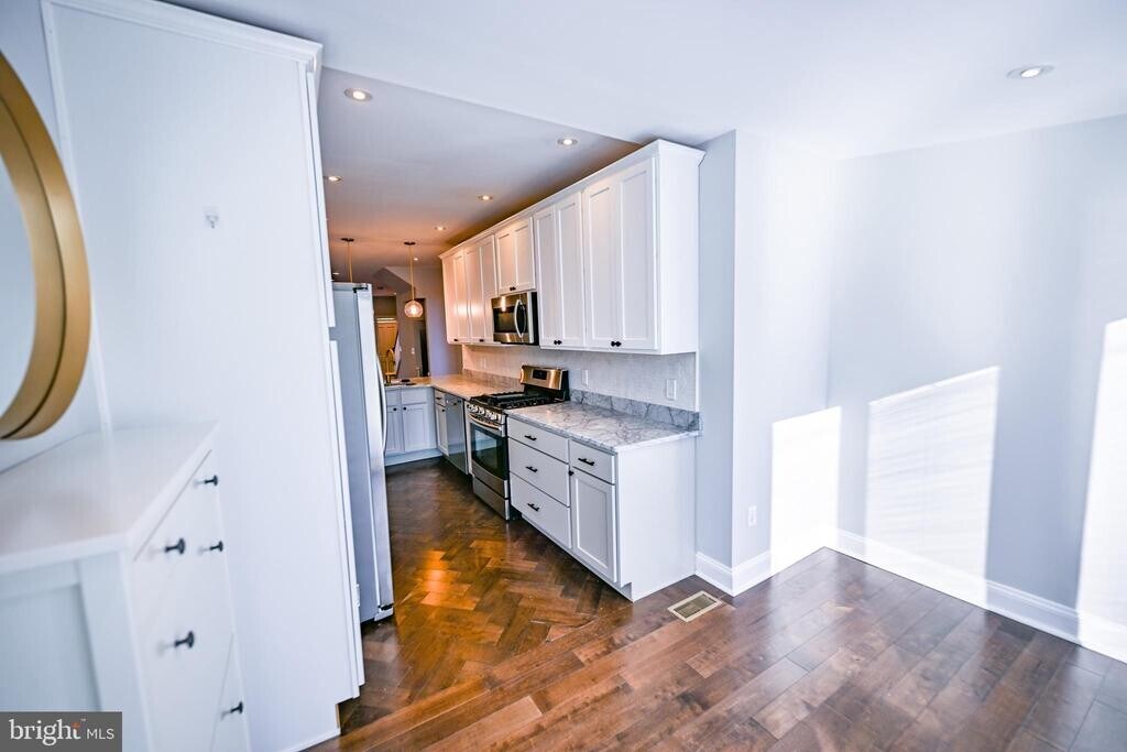 Welcome to 3013 Elliott St! Ideally located in the heart of Canton, just moments from both the Square and the waterfront, this 3-bed, 3-bath home truly has it all - classic charm meets modern updates, a rooftop deck with stunning views, off-street parking, and a finished basement. The main level offers an open floor plan filled with natural light, featuring exposed brick, hardwood floors, a spacious living and dining area, and a gourmet kitchen with natural stone countertops and updated appliances. The kitchen features a newly installed backsplash, a large pantry space, and recently upgraded hardware, lighting, faucet, and glass rinser. Enjoy extra space at the back of the home for a convenient mudroom or sun-drenched office leading to your private parking pad. Upstairs, the charm continues with exposed brick walls, a primary suite featuring an en-suite bath, and a second bedroom also equipped with a private, en-suite bath. Enjoy a multi-level deck leading to the show-stopping rooftop retreat with a pergola and sweeping city and water views. The finished basement with new extra-plush carpet and new blinds includes an additional bedroom, another full bath, and a bonus room - perfect for an office, gym, or guest space. Enjoy the benefits of an extra large washer and dryer and a new, efficient hot water heater recently installed. This Canton home is truly a gem that has been meticulously cared for and loved!