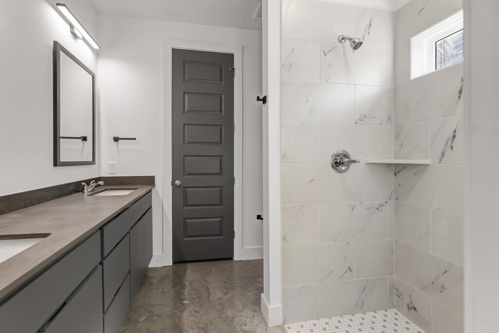 This luxurious 4 bed, 4.5 bath modern home with unique architecture in the popular south College Station area. Features include the Floor Plan -"Ghost Wolf" upgraded interior doors with 8' thresholds, expansive windows to let in natural light and much more! The master bathroom features a large walk in closet. Three of the four bedrooms have access to a full bathroom! The laundry room includes counter space, and cabinets for added storage. The living room boasts of an open floor plan to host guest. Complete with a two car garage, this could be your new home sweet home! It's less than 6 miles from Texas A&M University, 2 miles from Jones Crossing with dining and shopping, 2 miles from College Station High School (ranked among the top high schools by the US News and World Report), and 4 miles from the popular TowerPoint area with dining and shopping.