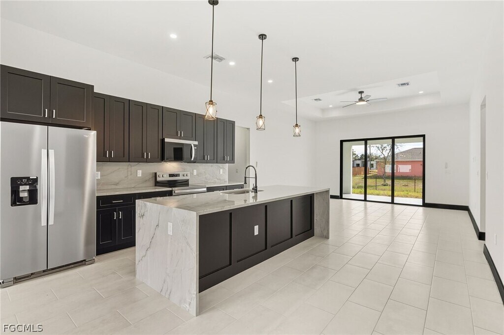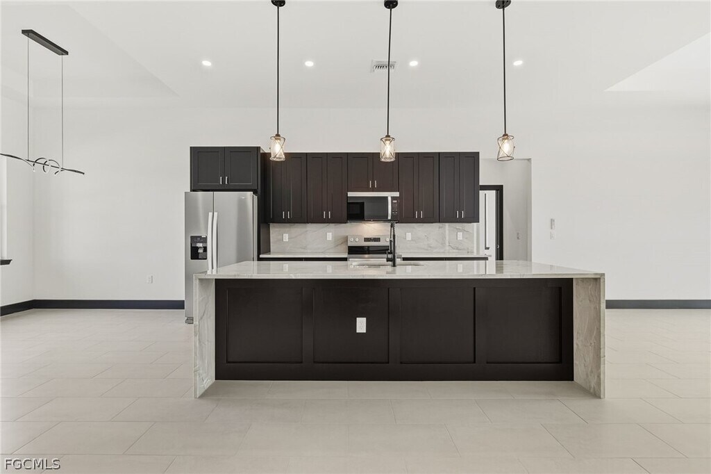 *AVAILABLE IMMEDIATELY FOR RENT AND SALE!* Welcome to this beautifully crafted,brand-new 2025 built “Chelsea” model by Unique Homes SWFL,offering exceptional custom finishes and quality throughout. Located on a quiet,private road just off Sunshine Blvd,this home provides quick access to Fort Myers,area schools,RSW Airport,shopping,dining,and major roadways. It is an ideal setting for commuters and for anyone seeking a peaceful location with everyday convenience. The standout feature of this property is the level of craftsmanship and materials used during construction. The sellers own a respected local granite and stone company in Ft. Myers,and the home showcases designer-selected natural stone "Quartzite" countertops,(Bianco Pearl in the kitchen and Alba Pietra in the bathrooms) custom cabinetry,premium tile flooring,and high-quality fixtures,all sourced from their professional showroom. Unlike standard spec homes,this residence offers a truly elevated and custom feel from the moment you step inside. The interior features 3 bedrooms,2 bathrooms,and 1,734 square feet of bright,open living space. The great room flows seamlessly from the modern kitchen,appointed with luxury stone surfaces,sleek custom cabinets,and beautiful finishes. Large windows and sliding doors allow abundant natural light to fill the home,creating a warm and welcoming atmosphere. The bathrooms are equally impressive,featuring upgraded tile and stone details that reflect the same high level of attention and care found throughout the rest of the home. HUGE pantry,HURRICANE-RESISTANT windows and doors,beautiful frosted-glass front doors are some added bonus features in addition. Set on an oversized lot with no neighbors to the west,the property offers added privacy and room to personalize your outdoor space,whether for gardening,pets,storage,or future enhancements. With no HOA,buyers can enjoy the freedom to bring their work trucks,RVs,boats,or trailers—flexibility that is highly sought after and increasingly rare. Schedule your appointment to view today!
