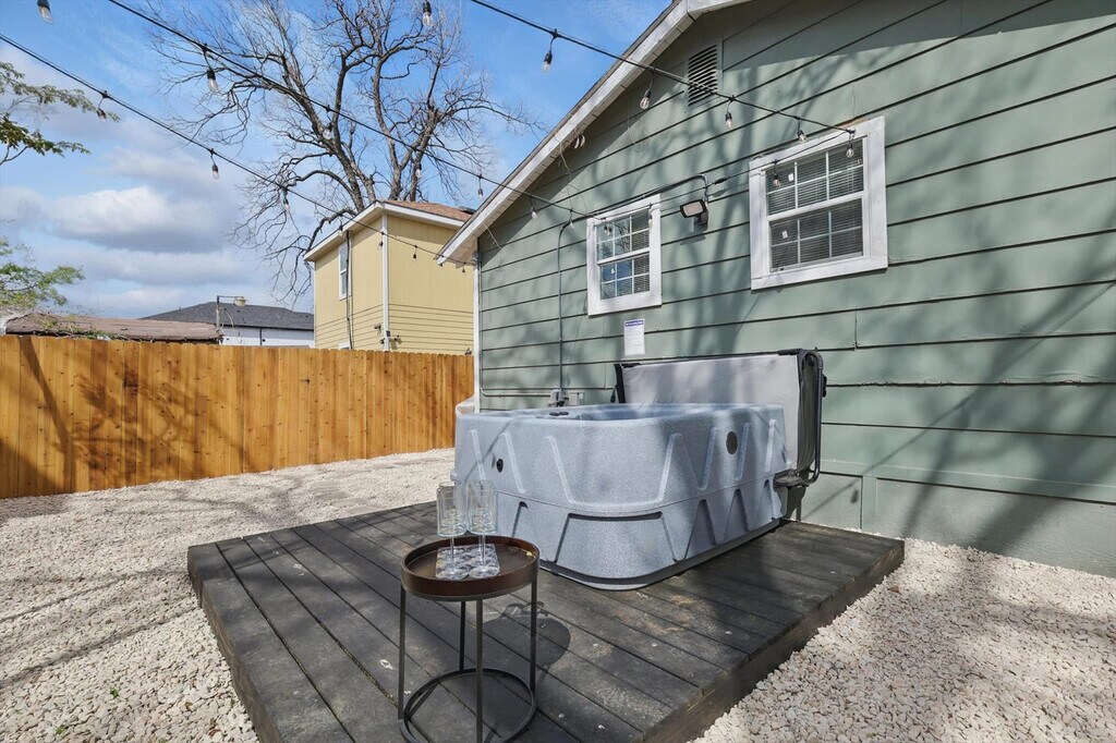 Why choose between urban adventures and character when you can have both? This historic charming getaway has been recently remodeled to offer the best of modern amenities and cozy charm. Located in the heart of Dallas, this home is only minutes away from attractions, shopping, and restaurants. Furnished with your comforts in mind, this is your next home away from home, featuring three bedrooms, two private bathrooms, and a private backyard with a hot tub. Step inside to discover a light-filled open floor plan that seamlessly connects the kitchen and living room, creating the perfect space for hanging out. Conveniently located in the much-desired West Dallas area, this home is only minutes away from Downtown Dallas, Deep Ellum, and Lower Greenville Ave – all prime locations known for their great restaurants and exciting shopping. Whether visiting Dallas for business or pleasure, this hidden gem provides everything needed during your stay. The fully equipped kitchen has everything you need to unleash your culinary creativity, with beautiful open shelving and a functional kitchen island. Stainless steel appliances, cooking essentials, and a dedicated dining area make it easy to socialize while preparing dinner. The living room features plenty of natural light, decorative greenery, and a wall-mounted TV, offering a fresh, modern feel. Free parking is available to all guests on the streets. Pets are welcome with a non-refundable pet fee of $150 per pet, with a maximum of two pets per stay. An additional nightly rate applies for more than six guests, with a $29/night fee for each additional guest. Come experience the best of Dallas, a bustling cosmopolitan known for sports, history, BBQ, and frozen margaritas. Dallas is home to more than a dozen neighborhoods and districts, each with its own distinct vibe and attractions. From spectacular museums and performing arts venues in the Arts District to the buzzing nightlife of live music and lively bars, there’s something for everyone here in Dallas. Attractions like The Sixth Floor Museum at Dealey Plaza, Reunion Tower, Perot Museum of Nature and Science, and Dallas Cattle Drive Sculptures are just a short drive away. Smoking of any type is not allowed, with violations subject to a $450 fine plus the cost to clean, deodorize, and repair damages. Check-in is at 4pm and checkout is at 10am. No parties or large unauthorized gatherings are allowed, and only registered guests are permitted. A noise alert device is installed to monitor reasonable noise levels, ensuring compliance with local noise ordinances and occupancy regulations. Pet cleaning fees apply, and pets should be kept off beds and furniture. Full disclosure of the number of people on the property is required at all times, with security camera verification to comply with local laws. Rest assured, no cameras are in any inside private areas, respecting the privacy of guests. This home caters to both short-term and medium-term stays, making it an excellent choice for corporate housing needs. Whether temporarily displaced from your home or requiring accommodation for your team during an extended project, this home provides a welcoming and comfortable "home away from home" experience. Registration Number: 575374 [SI]