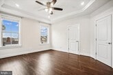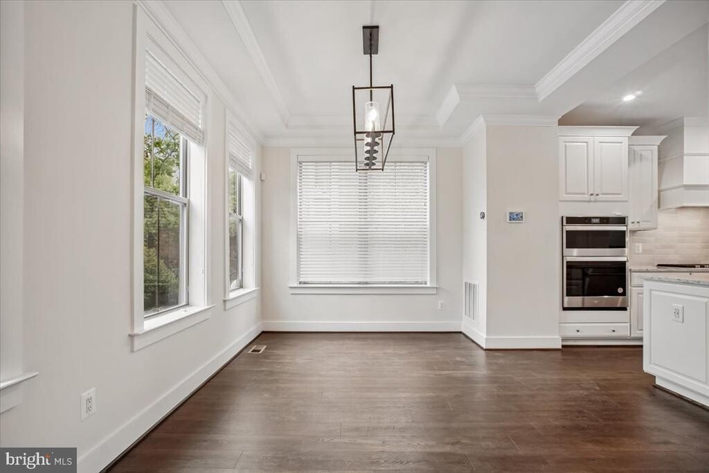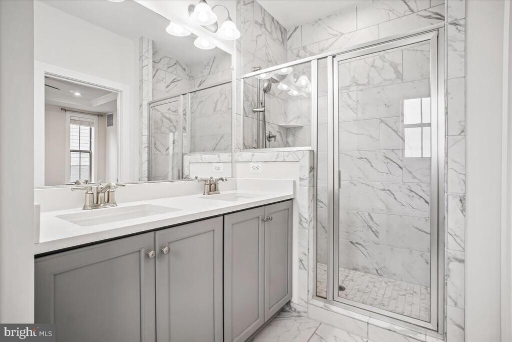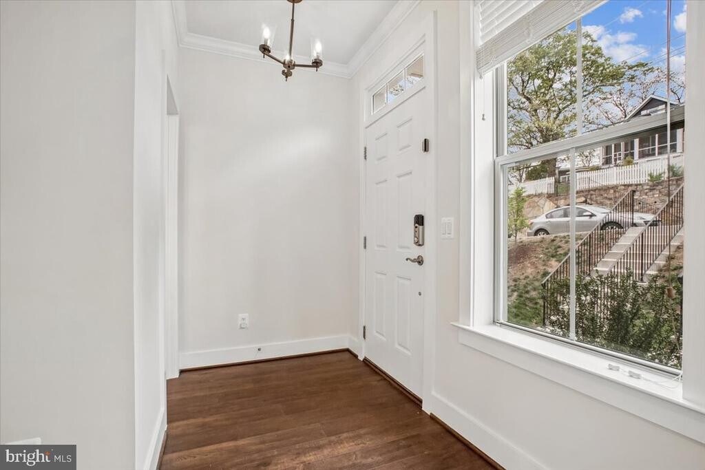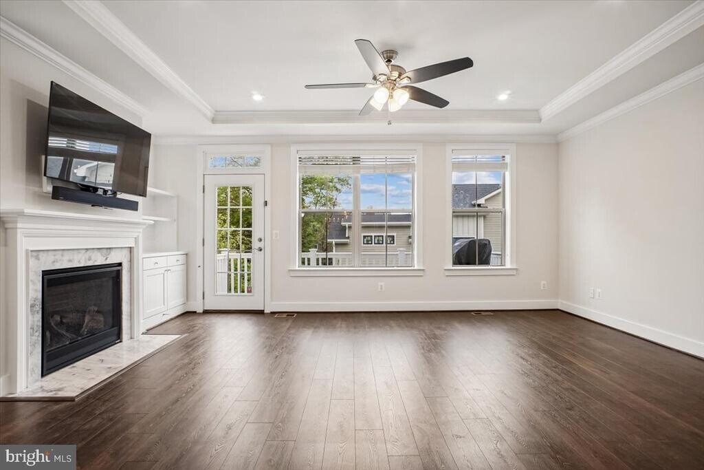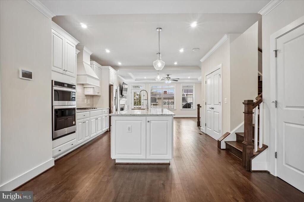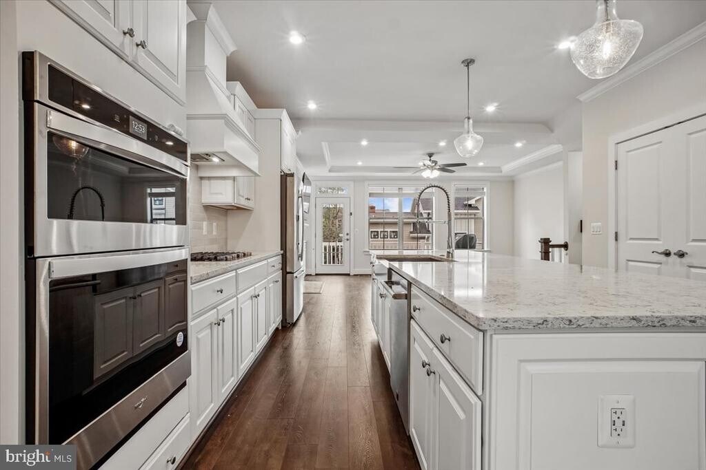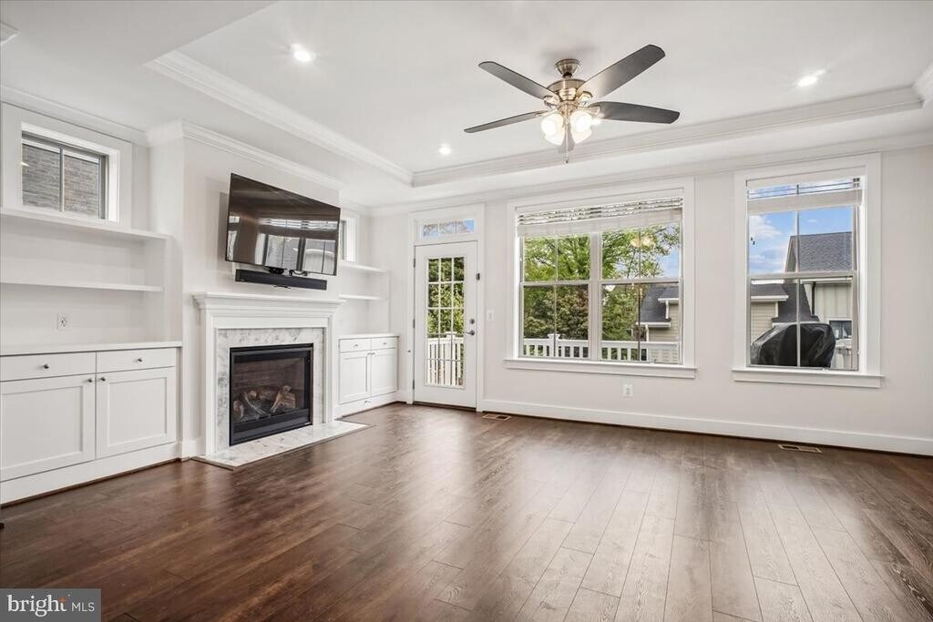 Stunning, sun-drenched 2022 end-unit townhouse in Arlington! This bright, beautifully constructed home features an open-concept layout with luxury vinyl flooring, soaring ceilings, high-end finishes, and thoughtful smart upgrades throughout. From the front porch, you’re welcomed into a main level designed for both everyday living and effortless entertaining. The dining area is filled with natural light and overlooks the front yard through elegant Palladian-style windows. The kitchen is a true centerpiece, featuring bright stone countertops, a breakfast bar, gas cooktop, custom cabinetry, and a well-designed pantry with hidden outlets. At the rear of the home, the family room offers a warm yet refined gathering space with custom built-ins and a gas fireplace. Just beyond, the Trex deck spans the full width of the home and includes a built-in gas line and water spigot—perfect for outdoor dining, entertaining, and gardening. Upstairs, the primary suite serves as a private retreat with peaceful treetop views, a walk-in closet, and a spa-inspired bath with double vanity and a walk-in shower. Two additional generously sized bedrooms share a well-appointed hall bath, and the bedroom-level laundry with full-size appliances adds everyday convenience. The top-level loft provides exceptional flexibility. The rooftop deck—complete with a gas line and water spigot—is the perfect spot to relax and take in Arlington skyline views. Inside, a secondary living area with a wet bar and Samsung TV, along with a fourth bedroom, full bath, and mini-split system, creates an ideal space for guests or an in-law suite or a home office. The lower level includes a 5th bedroom, full bath, and a spacious two-car garage that can easily double as a gym, complemented by additional driveway parking. A standout feature is the fully equipped garage, complete with two independent EV car chargers and ample storage. Additional highlights include Custom closet systems in every bedroom provide stylish, efficient storage solutions throughout the home, ceiling fans, high-speed internet pre-wiring, and included lawn care for added convenience. All of this in a prime location near Army Navy Country Club—walkable to Columbia Pike’s shops, restaurants, bars, and movie theater, and just a 5-minute walk to Walter Reed Rec Center. You’re also just over a mile from Shirlington’s dining, retail, dog park, and trails, with quick access to I-395, a 10-minute drive to Ballston and Route 66, and only 7 minutes to the Pentagon.