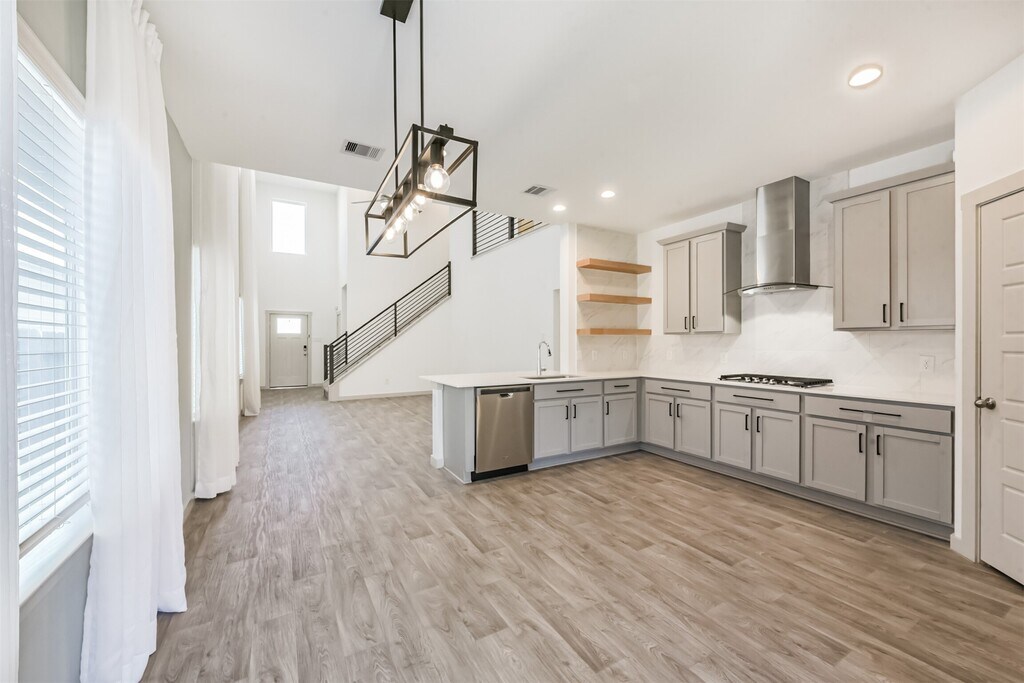 Welcome to this stunning 3 BR,2.5 BA home with a spacious floorplan and modern touches. The high ceilings and open concept living room create a welcoming atmosphere. The kitchen boasts white quartz counters,floating shelves,and stainless steel appliances. The first floor features a primary bedroom,while the second floor offers two secondary bedrooms and a loft space. This home is perfect for those seeking a contemporary living space. A must see!! MLS# 82960946