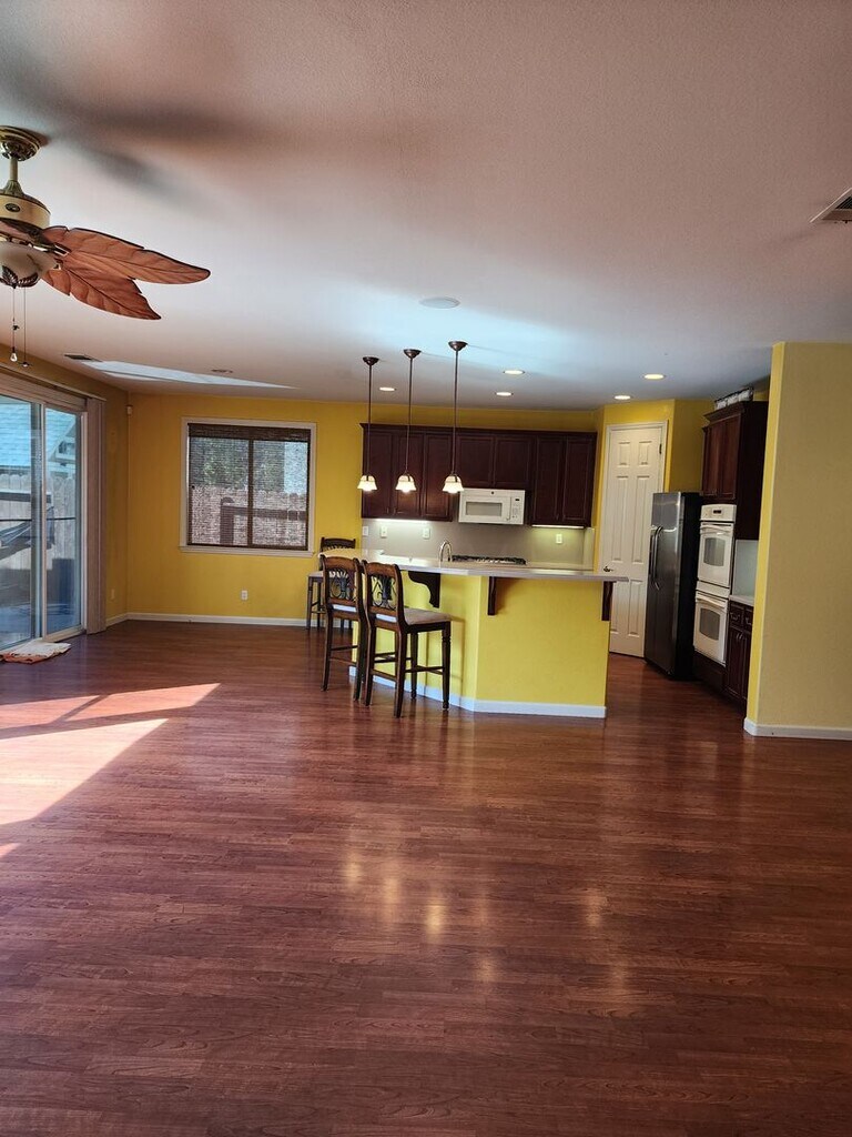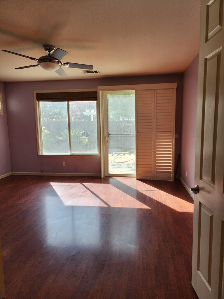 Experience spacious living in this magnificent two-story residence featuring 5 bedrooms and 3 full bathrooms. The grand entrance boasts soaring cathedral ceilings and a dramatic catwalk overlooking the formal living and dining rooms. The open-concept kitchen is a chef’s dream, equipped with double ovens, a gas cooktop, and ample cabinet storage. This thoughtfully designed layout includes a primary suite and a secondary bedroom downstairs. The luxurious master retreat features double French doors, dual vanities, and an expansive walk-in closet. Upstairs, you'll find three additional bedrooms, a dual-sink bathroom, and a convenient second-floor laundry room. Unique Highlights: Tech-Ready Garage: 3-car garage includes custom shelving and a dedicated high-speed plug for Tesla/EV charging. Dual Laundry: Hookups on both levels (garage set includes washer/dryer). Elegant Finishes: Hardwood flooring, custom paint, recessed lighting, and a cozy gas fireplace. Low-Maintenance Outdoors: Professionally landscaped front yard and a serene backyard featuring a rock garden, stepping stones, and a decorative fountain. Location: Situated in the desirable Sylvan School District, close to local parks and schools. Residents must carry liability insurance Stanislaus Property Management Inc. Brokers License 02117169