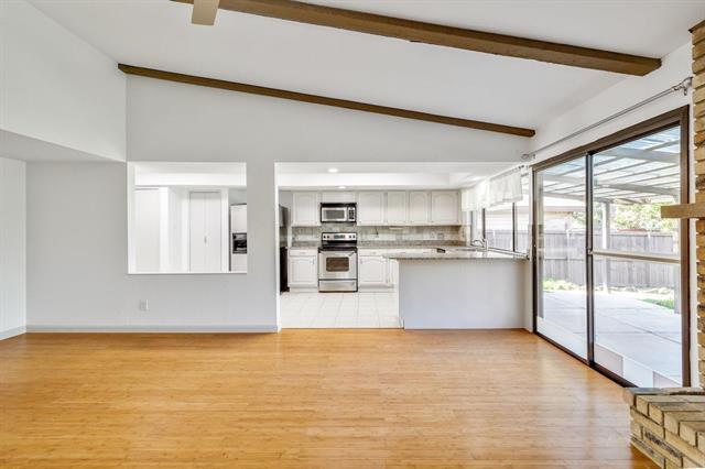 This charming and well maintained home is ready for occupancy. Updated primary shower, and new windows on the way for added comfort and efficiency. The home offers great natural light and a spacious, open layout with LVP flooring in all three bedrooms and both bathrooms. The inviting living room features a cozy wood-burning fireplace, soaring ceilings, and eye-catching wood beam accents that add character and warmth. Step outside to a large private backyard with extended covered decking—perfect for relaxing, entertaining, or outdoor dining.