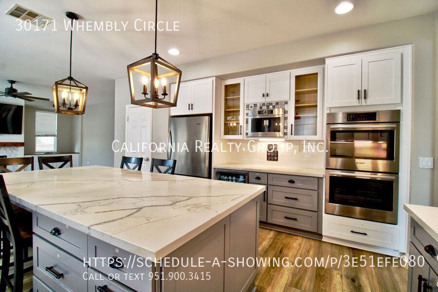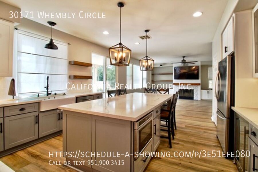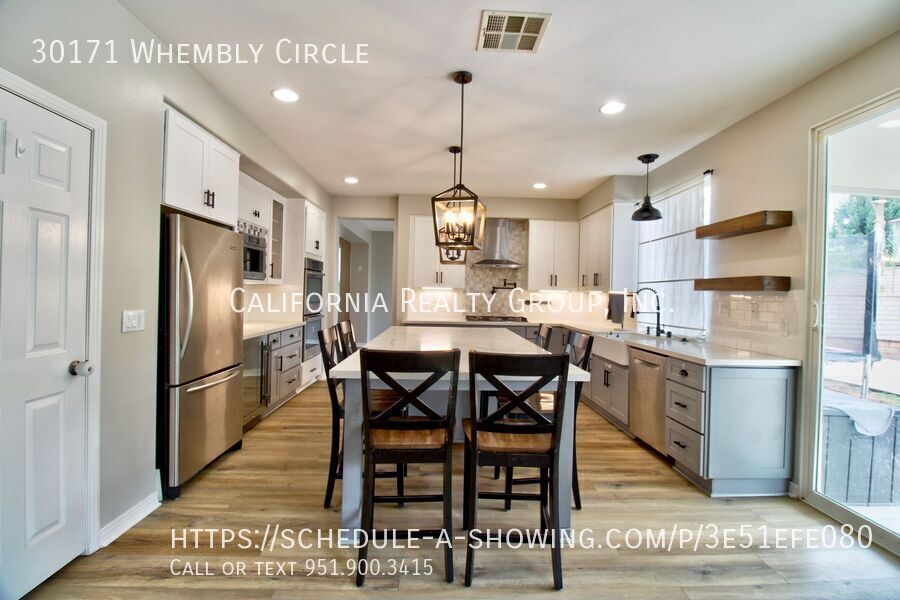 One-of-a-Kind 6-Bedroom Pool Home in Desirable Menifee Neighborhood! Welcome to this stunning and spacious 6-bedroom home that truly has it all! From the moment you step inside, you’ll fall in love with the luxury vinyl plank flooring, abundant natural light, and the perfect blend of modern style and natural wood accents that add warmth and charm throughout. The open-concept layout features a welcoming great room that flows seamlessly into a formal dining area—ideal for entertaining. The gourmet kitchen is a showstopper with a large island with bar seating, beautiful countertops, and top-of-the-line stainless steel appliances, including a double oven, built-in microwave, and refrigerator. Enjoy cozy evenings in the inviting living area with custom built-ins, or retreat upstairs to the expansive loft space—perfect for a media room, playroom, or second living area. With 6 generously sized bedrooms, there’s room for everyone. The primary suite features an ensuite bathroom, a walk-in closet, and stylish finishes. You’ll also appreciate the laundry room, complete with washer and dryer included. Step outside and discover the backyard oasis—highlighted by a beautiful pool, a putting green, and plenty of space to relax or entertain. Additional features include: 3-car garage Energy-saving solar panels ($230/month) Beautiful touches and wood accents throughout Prime location near top-rated schools, parks, shopping, dining, and more! Pets welcomed with owner approval. Pool and landscaping maintenance will be tenant responsibility. Tenants will be responsible for the monthly solar fee of $230, plus any electric costs accrued. Tenants will switch electric into their name, along with all other utilities. Pool Solar Home Washer & Dryer