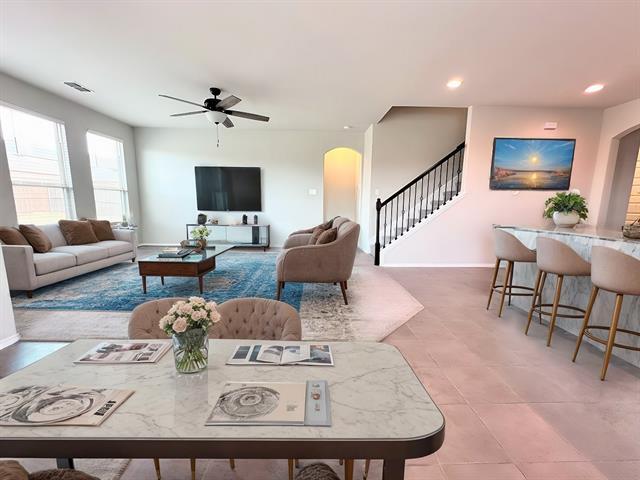 This charming and gently lived-in 1.5-story home with 3BR+HomeOffice+3FullBath, 2FamilyRm, and 2 CarGarage in a cul-de-sac location offers peace and comfort. This beautiful home has a functional layout, light and bright. The oversized kitchen has a gas stove top, which is vented outside, a dishwasher, a microwave, and a side-by-side refrigerator; newer washer & dryer are also included in the rent. The flat counters with granite have added space when preparing meals for family & friends. The big dining area is adjacent to the family room, making it great for all family gatherings. Two BRs downstairs + dedicated home office. The big Master BR offers a luxurious ensuite bath, 2 Spacious Vanity sinks, a separate tub & shower, and 2 huge Walk-In closets. Upstairs is a huge game room for a family game & movie night, and 1 Big BR with a full bath & walk-in closet. There's a front-covered porch and a back-covered patio as added convenience. The big backyard with a sprinkler system ready offers privacy and room for your kid's fun activities. Staycation in the highly desirable Heartland community provides several water parks, swimming pools, a pavilion, a fitness center, a playground, fishing ponds & walking trail. Onsite schools for everyone's convenience- 2 elementary schools, middle, and high school are within minutes away. Quick access to I-30 and easy commute to Downtown Dallas.