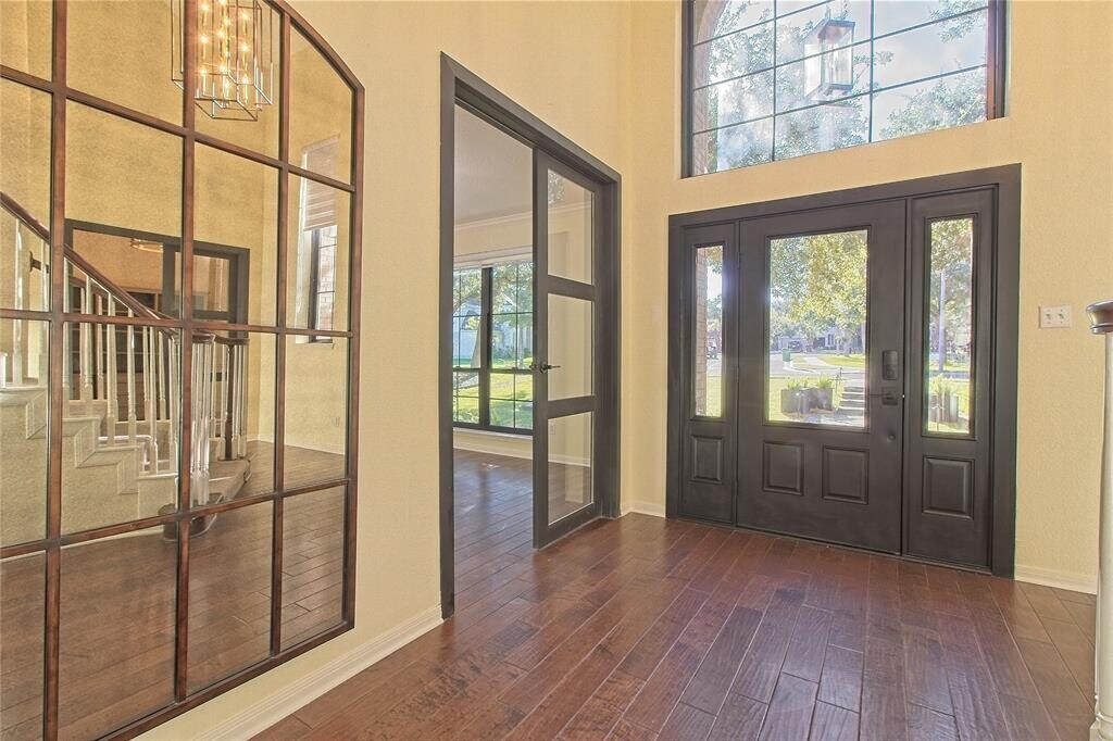 Discover the charm of Lovely Estates at Forest Ridge with this captivating half-acre property. Enter through the fully automated front gate and step inside to find elegant wood floors throughout the lower level, complemented by travertine tile in the updated kitchen. Custom cabinetry, granite countertops, a walnut butcher block center island, double oven, and a farmhouse sink make this kitchen a chef's dream. It seamlessly flows into the living area, featuring a marble-framed fireplace. The downstairs master suite boasts a dual vanity, walk-in shower, and a spacious closet with custom built-ins. Upstairs, a generous bonus loft space and three bedrooms await, two of which share a jack-and-jill bath. Andersen Windows throughout; all walk-in closets customized by California Closets; separate A/C units for each floor. Outside you'll find a fire pit and a delightful patio that overlooks a heated pool, hot tub, and a sport court, creating the perfect setting for relaxation and entertainment. Community amenities include pool, playground. Pool maintenance included but vacuum available on-site for cleaning as needed between treatments. Outdoor kitchen coming soon! Pets ok; limit two; 50 lbs or less. *** Resident must choose between two resident benefit packages at time of application.