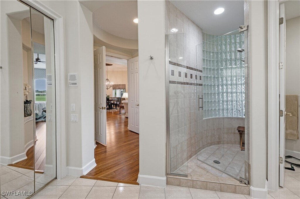 Spectacular Golf Course and Lake Views. Close proximity to the private golf club with the opportunity to a transfer to a Sports membership to enjoy large community pool,tennis,pickle ball,dining and limited golf. Second floor condo with private ELEVATOR open airy floorplan with plenty of room to enjoy guest and family. Two guest bedrooms are ensuite,the primary suite features a sitting area and an elegant spa like bath with soaking tub frameless glass shower and dual vanities The tiled lanai is oversized and screened,electric shutters to keep the weather out The views are outstanding and peaceful allowing for morning coffee,Al Fresco dining and just relaxing. This home has been meticulously maintained and recently updated with Pex-A piping,a brand new AC unit 12/24 and a new water heater. Kensington is centrally located minutes from Naples Best Beaches,shopping,dining and downtown Naples.