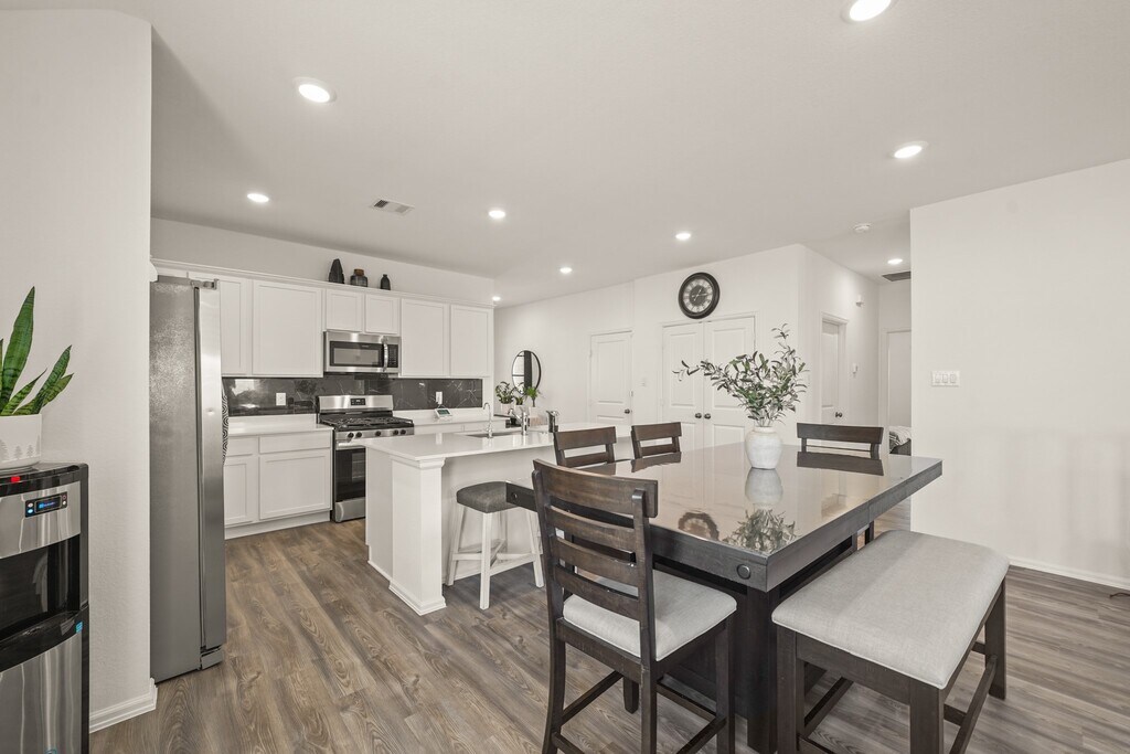 Rare Opportunity – Fully Furnished Home with loads of Upgrades! Step into modern living with this 1-year-old Rosenberg home zoned to FBISD,offered fully furnished and below market value. Featuring 4 bedrooms,a private study with French doors,and 2 covered porches,the layout balances comfort and function. The open kitchen showcase a sleek modern polished backsplash,dining,and family room and upgraded flooring. The owner’s suite includes a spa-like bath and walk-in closet. Upgrades include: epoxy garage & Front porch flooring,bidets in all baths,rain gutters,reverse osmosis + water softener,and dual covered patios. With its thoughtful finishes,luxury upgrades,and move-in-ready design,this home is a rare find. Rosenberg - Fort Bend ISD - Minutes from shopping,dining & highways Below market. Fully furnished. Luxury upgrades. MLS# 90294021