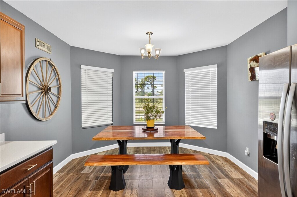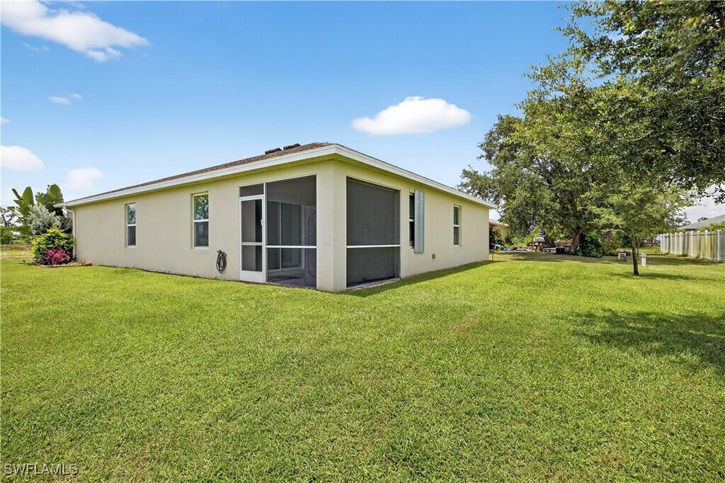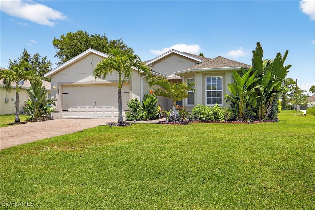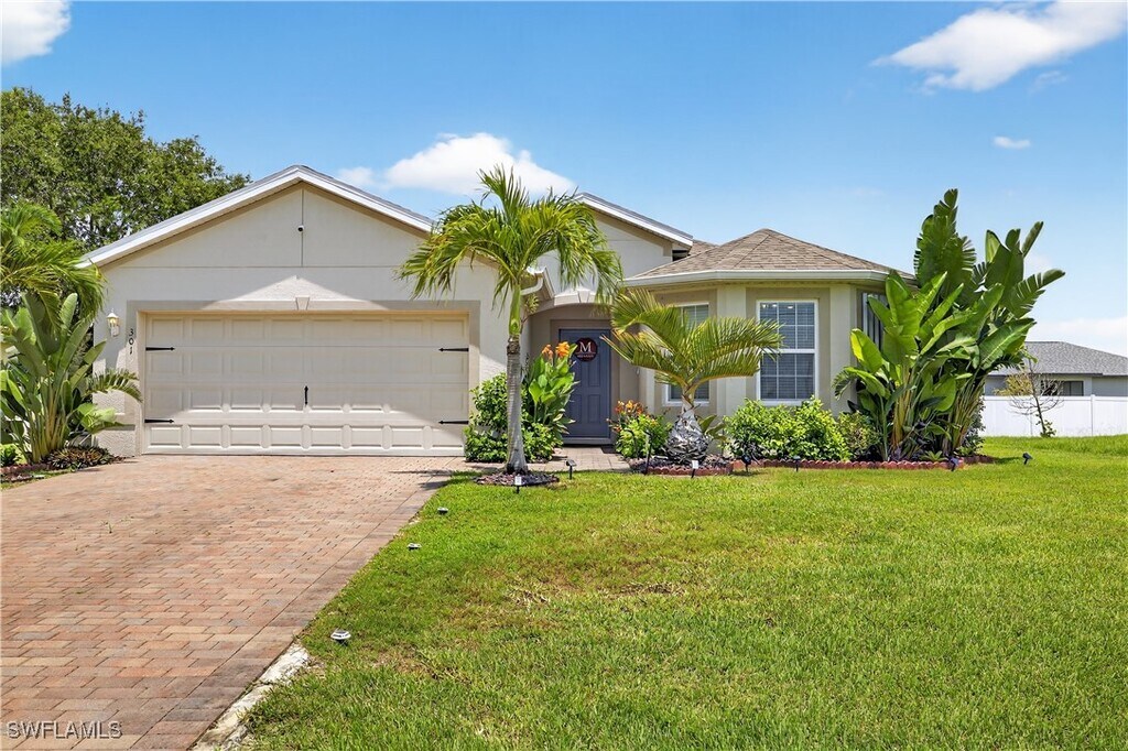 Constructed in 2021,this single-family residence is now available in a quiet,inland neighborhood of Cape Coral. This property offers an excellent opportunity for those seeking a modern home in a tranquil setting,with convenient access to the amenities of North Cape Coral. The home features a thoughtfully designed layout that includes three bedrooms and two bathrooms. The residence is characterized by its contemporary construction and attention to detail. The open floor plan provides a comfortable and functional living space,suitable for both relaxation and entertaining. Located in close proximity to several golf courses,this property will appeal to golf enthusiasts seeking convenient access to recreational opportunities. The surrounding area offers a peaceful atmosphere,while remaining easily accessible to major thoroughfares,shopping centers,and dining establishments.
