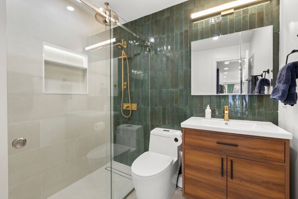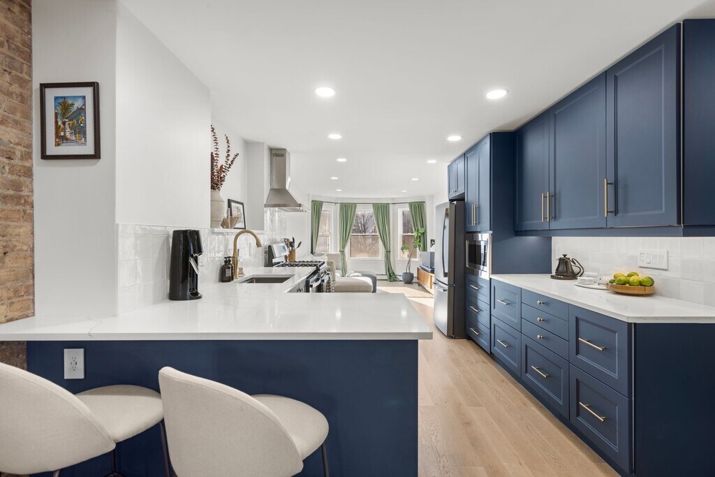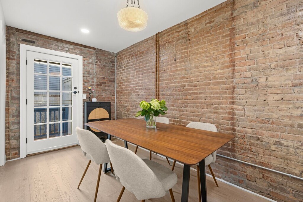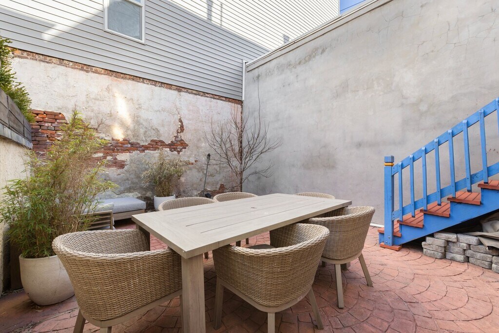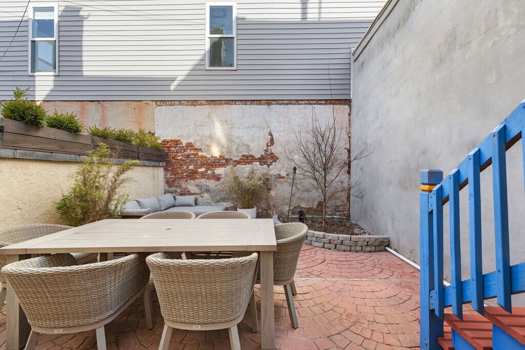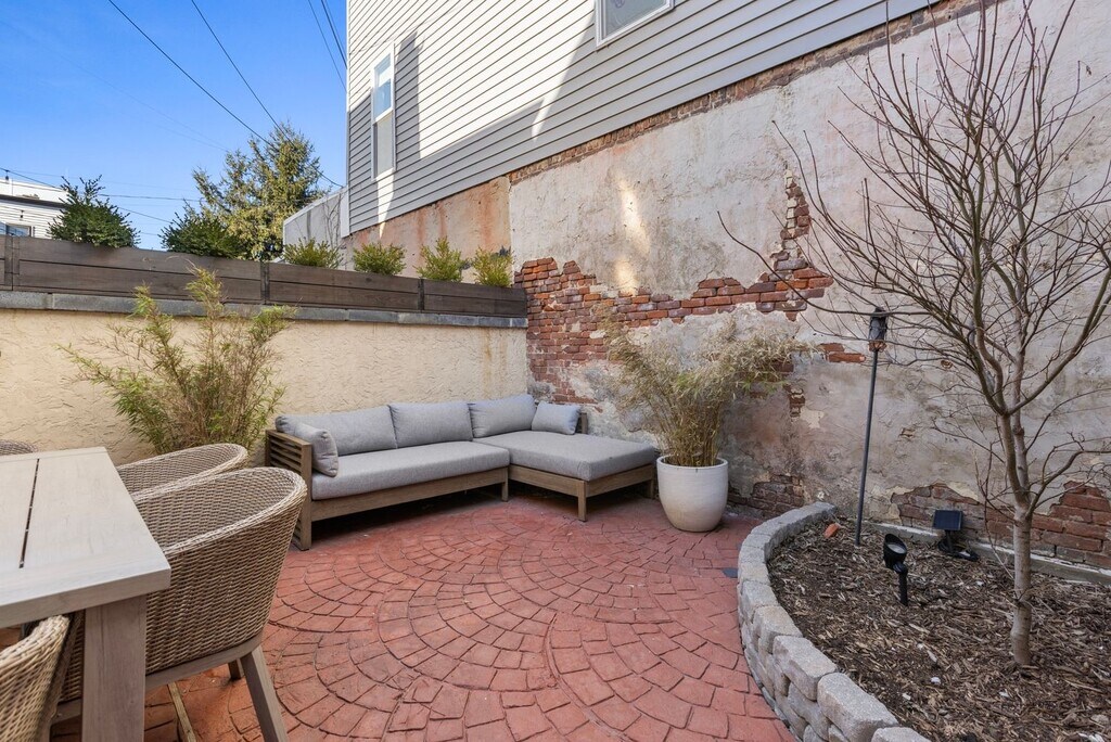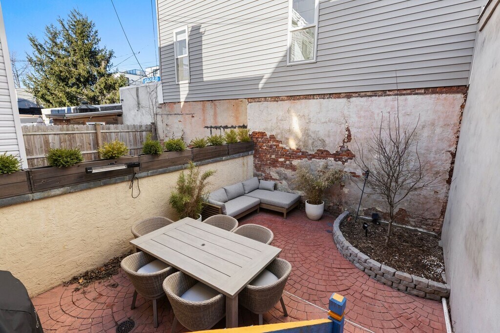 Modern 2 Bedroom- 2 bath + Office Townhome with Outdoor Yard Downtown Jersey City Available furnished if desired Welcome to your beautiful urban retreat on 4th Street in Downtown Jersey City one of the most desirable and walkable neighborhoods just minutes from Manhattan. This thoughtfully designed, fully furnished 2-bedroom, 2 bath + office townhome blends contemporary finishes with historic character, offering comfort, convenience, and style for your extended stay. About the Space This home features exposed brick walls, oak flooring, and custom design touches throughout. Fully renovated kitchen, bathroom, living and dining room. Chefs Kitchen: A modern kitchen with navy shaker cabinetry, quartz countertops, brass fixtures, and high-end stainless-steel appliances (gas range, dishwasher, microwave, and refrigerator). Designer Bathroom: Spa-inspired bath with deep green glazed tile, walk-in rain shower, floating vanity, and luxury brass fixtures. Living + Dining: Bright and inviting open-concept layout that blends comfort with style. Private Office: Perfect for remote work or study. Outdoor Space: Enjoy a private brick-walled patio with a lounge area - a rare find in the city and ideal for morning coffee, reading, or entertaining. Location Highlights This home is ideally situated on 4th Street, placing you in the center of everything Jersey City has to offer. PATH Access: 10 minute walk to both the Grove Street PATH Station (direct to World Trade Center or 33rd St) and Newport PATH Station. Commute to Lower Manhattan in under 15 minutes. Local Essentials: Within a 3 minute walk, you'll find a butcher, grocery store, fish market, and cafe all local favorites. Dining & Lifestyle: Steps to Hamilton Park, Newark Avenue Pedestrian Plaza, and Jersey City's best restaurants, bakeries, and boutique shops.