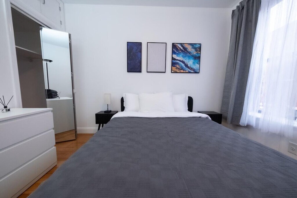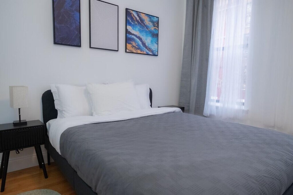 Feel at home in this charming, newly renovated and fully furnished 2-bedroom apartment. Located on the second floor (one flight of stairs), this apartment has all the necessary amenities for a great stay. This comfortable and large apartment has all the amenities necessary for a great stay. It consists of a living room, dining room, two bedrooms, a full kitchen, and a bathroom. Each bedroom has ample closet space and a queen-size bed. The living room has a couch. The kitchen is fully equipped with a large refrigerator, stove top, oven, coffee maker, toaster, microwave, dishwasher, and all the utensils and cutlery you might need during your stay. Bed linen, towels, an iron, and a hair dryer are provided. Parking is available on the street and is free, but please note there is alternate side parking most days. Different days for different streets around the neighborhood, so please make sure to read all signs. The apartment is a couple blocks away from the 6 and Q trains and Central Park. Smoking inside or outside of the house will result in an automatic loss of a security deposit. Luggage storage is not available. Kindly note that a $350 refundable security deposit is required and will be collected directly by the partner after your booking is confirmed. The security deposit will be handled through direct communication with the partner and is not processed automatically. [SI]
