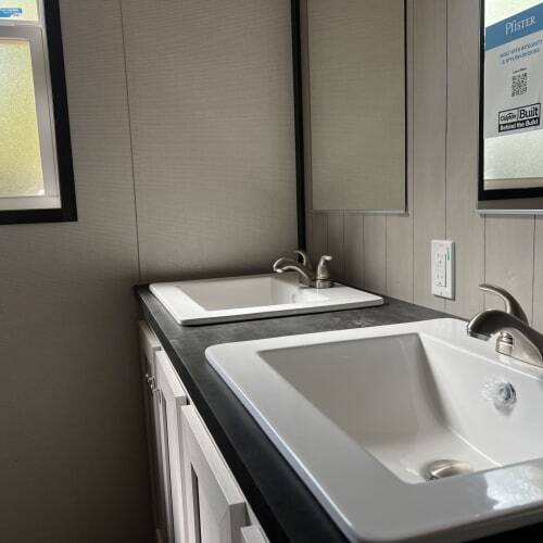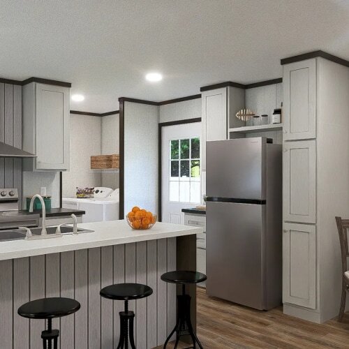 COMING SOON! Get on the wait-list! This beautifully designed manufactured home blends modern style with everyday functionality. The open-concept layout creates a seamless flow between the kitchen and living area, making it perfect for entertaining or simply relaxing at home. The kitchen is a standout feature with its cabinetry, stainless steel appliances, sleek range hood, and a large center island with bar seating. Built-in shelving and generous counter space add both style and practicality, giving you the perfect mix of storage and display options. The living room offers a welcoming atmosphere with its comfortable layout, recessed lighting, and plenty of natural light. Whether you're hosting guests or enjoying a quiet evening, this space delivers both comfort and versatility. The primary bedroom serves as a private retreat, featuring a spacious design and an ensuite bathroom for added convenience. Thoughtful finishes and modern details throughout make this home both stylish and inviting. Homes like this, offering quality design at an affordable price point, don't stay on the market for long. Schedule your showing today and make this modern home yours before it's gone. Disclaimer: Photos are staged for marketing purposes. They accurately represent the home's layout and features, but furnishings, décor, and styling are not included.