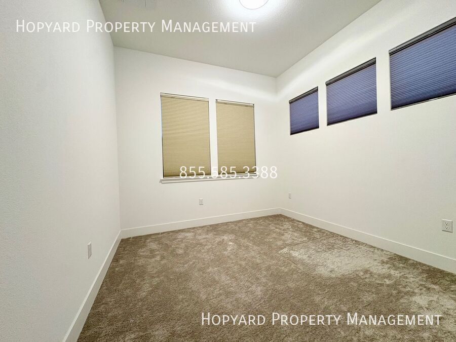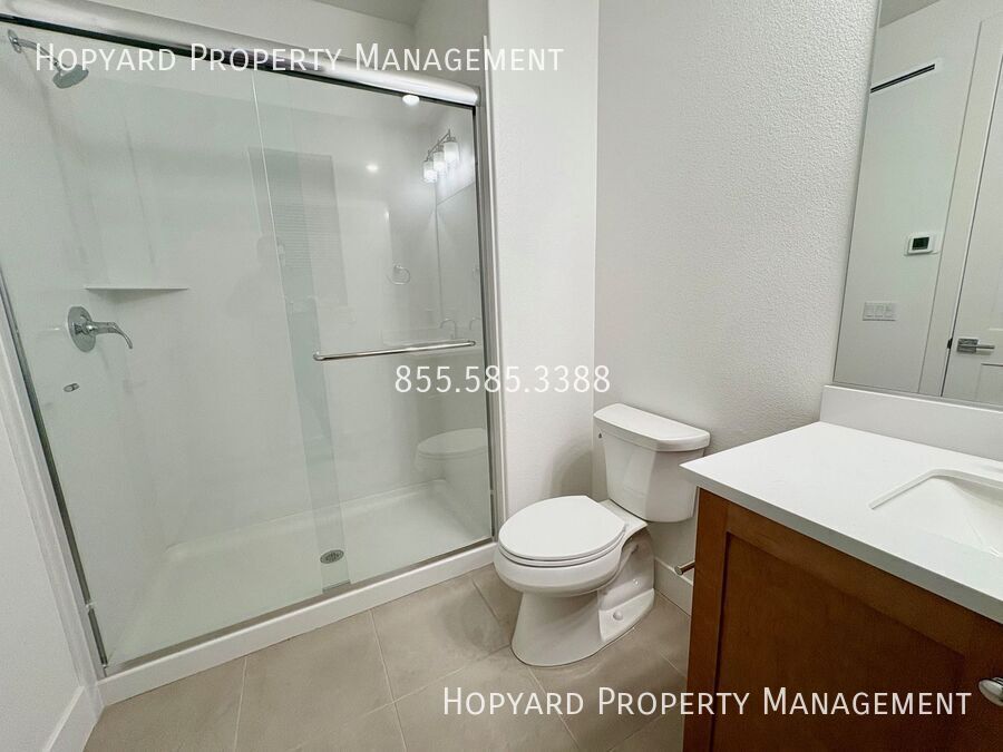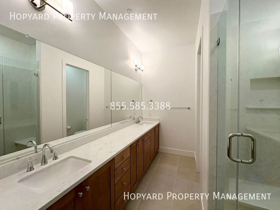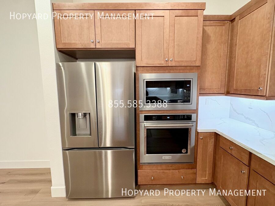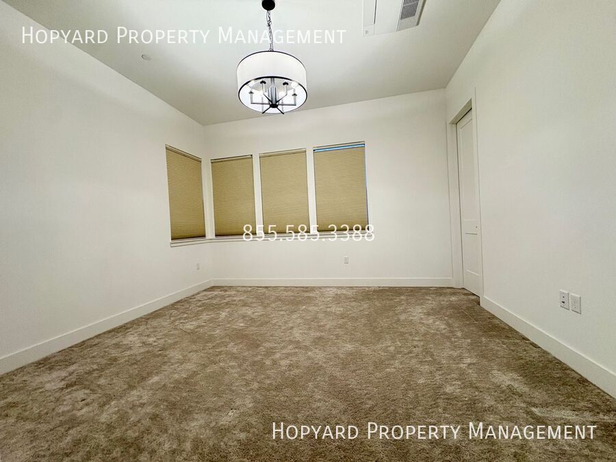A bright first-floor foyer and stairs open onto the expansive second floor, revealing the beautiful great room with access to a lovely covered balcony. A spacious casual dining area is central to the well-appointed kitchen, enhanced by a large center island with breakfast bar and wraparound counter and cabinet space. On the third floor, the charming primary bedroom suite is complete with an expansive walk-in closet and a gracious primary bath with a dual-sink vanity, a large luxe shower with seat, linen storage, and a private water closet. Secondary bedrooms feature sizable closets and a shared hall bath. On the fourth floor is an impressive spacious terrace. Additional highlights include a desirable first-floor bedroom with a closet and a private bath, easily accessible bedroom-level laundry, a convenient living-level powder room, an everyday entry with drop zone, and ample additional storage. This home is professionally managed by Hopyard Property Management. All our properties are professionally cleaned and undergo a thorough inspection prior to any move-in. At any time, you are welcome to call us and speak with a live agent. For additional verification, you may look us up on Google: Hopyard Property Management DRE#02099691 LEASE TERM: 12-MONTH / RENEWABLE Brand New Appliances Central Ac/Heat Central Heating Indoor Laundry Kitchen Island Play Area Range/Oven Recessed Lighting Roof Terrace Two Car Garage View Walk In Closets