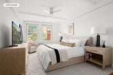 Apartment 3B is a bright, well-proportioned one-bedroom, one-bath residence with five windows offering excellent natural light and picturesque, tree-lined views over the West Village. This warm, welcoming home epitomizes prewar charm with a gracious arched entry foyer, beamed ceilings, hardwood floors throughout, and a wood-burning brick fireplace that anchors the living space. The windowed kitchen is both functional and thoughtfully designed, with granite countertops, cherry wood cabinetry, and stainless-steel appliances, including a Viking range. The bedroom easily accommodates a king-sized bed and additional furnishings. The apartment features generous closet space and abundant storage throughout.Located at 302 West 12th Street, at the corner of West 12th Street and Eighth Avenue, this iconic Bing and Bing building sits directly across from Abingdon Square Park. The condominium offers a 24-hour doorman, central laundry room, bike storage, and a live-in superintendent. Residents also enjoy access to a furnished and landscaped roof deck with views over the West Village Historic District and sweeping skyline vistas, including the Hudson River - a rare and peaceful retreat above the city. Pets permitted on a case-by-case basis.The surrounding neighborhood is among Manhattan's most sought-after, celebrated for its historic architecture, intimate scale, vibrant cafés, acclaimed restaurants, and immediate access to Hudson River Park. This residence can also be offered partially/fully furnished.Payments and Fees Required:First Month's RentOne Month Security DepositApplication Processing Condo Fee: $350Move-In Fee (Non-Refundable): $500