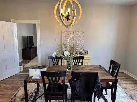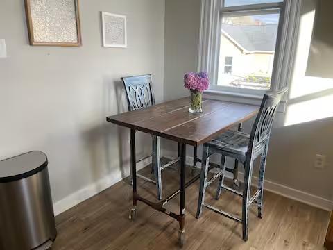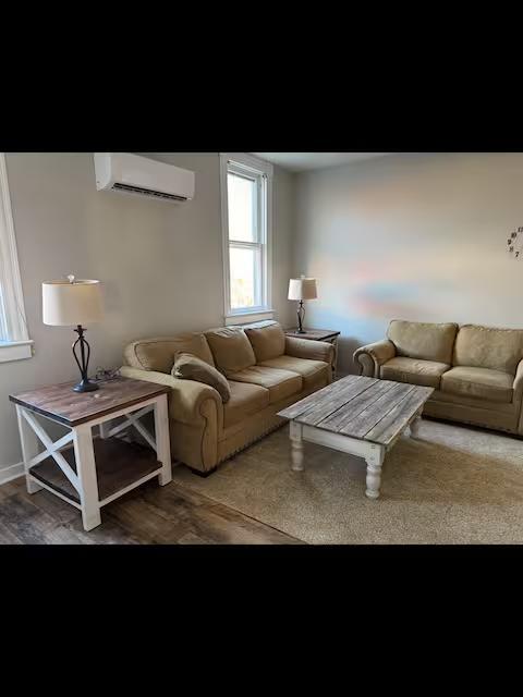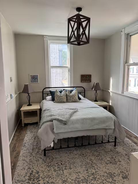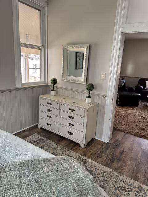 Spacious, fully furnished 2-bedroom apartment located in the heart of downtown Brunswick. Set in a beautiful historic building above a popular lounge and directly across from Smoketown Brewery. This updated unit features a full kitchen with dining room, cozy living areas, and a full bathroom with tub and shower. One bedroom offers a king bed and the other a queen. Enjoy in-unit laundry, an elevated patio overlooking the street, and a cozy backyard fire pit.Flexible lease terms available. Perfect for traveling professionals, contractors, or anyone seeking a comfortable temporary home.Secure bike storage is available for C&O Canal riders, and there’s plenty of nearby parking. Perfect blend of historic charm and modern convenience—just steps from local restaurants, shops, and the MARC train. In a building that was a hardware store for over 100 years. This building now has multipurpose tenants. It has a vast rich history with character that will bring you right back to the early...