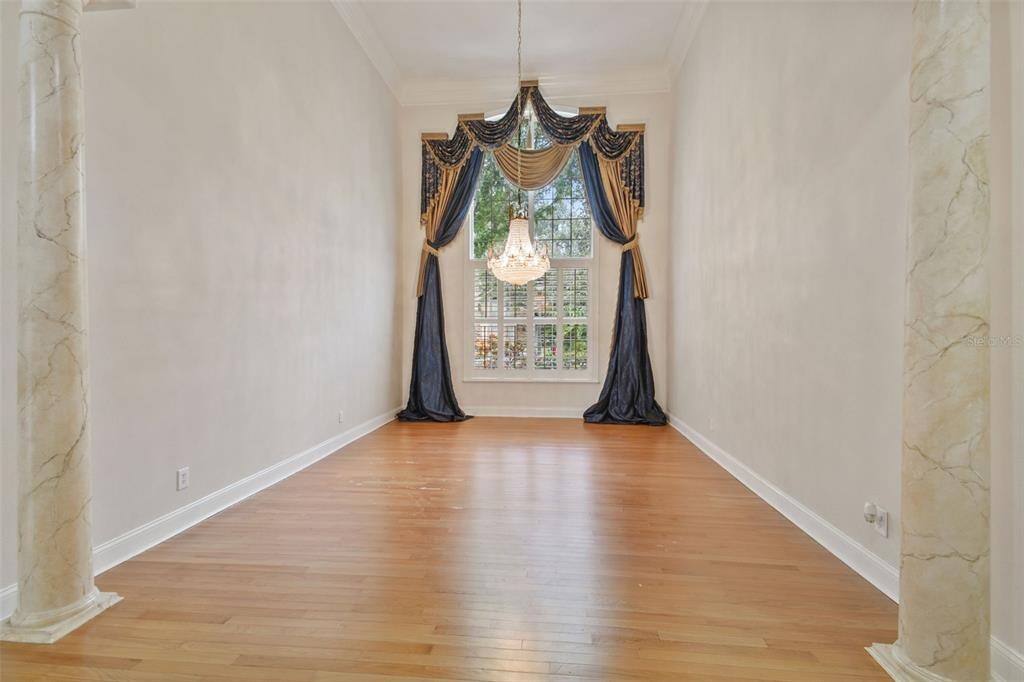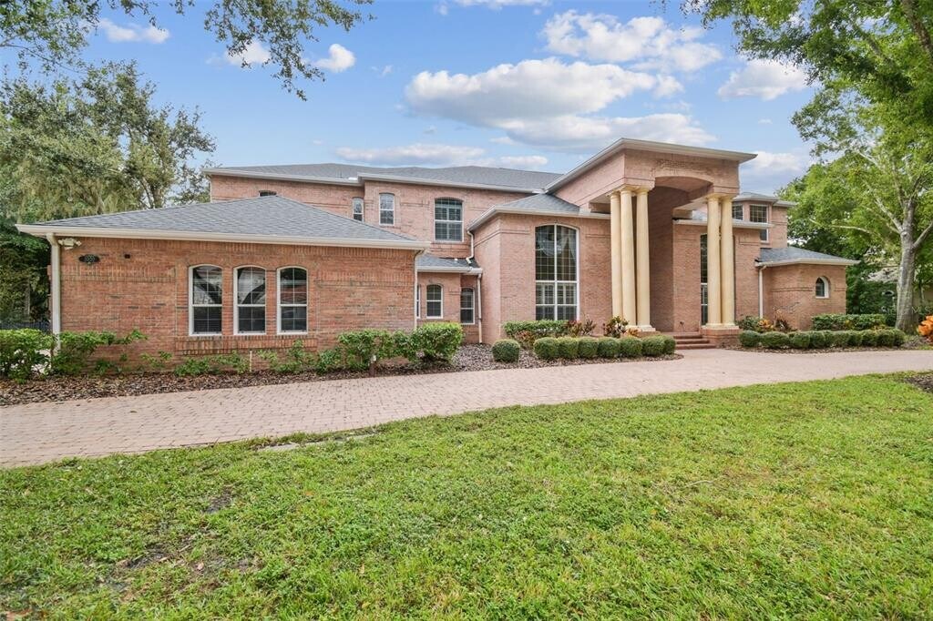 Welcome to this an exquisite one of a kind custom-built brick estate that embodies refined luxury and sophistication. This house is perfectly situated on a double lot of 1.5 acres in one of Tarpon Springs’ most sought-after luxurious neighborhoods. This magnificent home offers both privacy & grandeur,minutes from Gulf beaches,charming downtown shops,and top-rated schools. All with Brand New Roof & 3 newer HVAC systems. As you drive up the circular paved driveway & enter through the double entry doors,you’re greeted by a breathtaking two-story foyer that opens to a formal living room with a circular staircase,soaring ceilings and sweeping views of the estate grounds. Stunning gold-plated crystal chandeliers and a custom-made bookcase,serve as the centerpieces of the formal living room adding a touch of timeless elegance. On the right,an executive office/ library with exquisite built in cabinetry overlooks the front yard,offers a peaceful retreat or quiet place to work. Every detail of this home reflects exceptional craftsmanship—from the rich millwork & triple crown moldings to the hand-finished cabinetry & architectural detailing throughout. The chef’s kitchen is a masterpiece,featuring a large crystallite granite island,custom wood cabinetry,and premium stainless-steel appliances. A walk in pantry for storage. Across from kitchen,there is a stately formal dining room framed with Roman columns sets the stage for elegant dinner parties. The home’s interior showcases marble,tile and rich hardwood flooring,complemented by arched doorways,art niches,and designer lighting. The two-story family room impresses with a built-in entertainment center,a fireplace and grand windows that fill the space with natural light. Each bedroom suite is generous in size including a walk-in closet,offering comfort and privacy for family and guests. Two bedrooms with ensuite bathrooms are located on the first floor,one on each side of the house. There is also a guest half bathroom on the first floor. The master primary suite is on the second floor,featuring its own fireplace,a spa-like marble bathroom,column surrounded garden tub,a walk in granite shower,and two walk in closets. The split plan offers two more bedrooms and a full bathroom on the other side of the second floor. A second staircase,a small loft and a huge balcony overlooking the backyard allow for enjoyable views. Step outside to your private backyard oasis—complete with a sparkling pool and spa,paved travertine deck,surrounded by lush landscaping and calm pond,perfect for entertaining or unwinding in style. Pool has a separate full bathroom that was recently remodeled. A three-car side-entry garage and large side driveway,and side fenced yards for pets complete this extraordinary property. This residence is part of a large gated community with security guards. Community features a clubhouse,golf course,and a private restaurant. Location is key as it is a short drive to many florida beaches,Tarpon Springs sponge dock,many marinas,and about 30 minutes away from Tampa Internation Airport and St. Petersburg airport. The community is surrounded by many shopping centers,county parks and close to major roads and highways which makes it the perfect location in the midst of everything. Experience the perfect blend of elegance,comfort,and timeless design in this remarkable Tarpon Springs estate. MLS# TB8473834