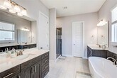 Spacious 3 bed and 2.5 bath home with a study and a large game room. All the bedrooms are in Downstairs and 1 Game room upstairs. Features a gourmet kitchen, a bright living room with vaulted ceilings, and a master suite with deep soaking tub and a walk-in closet. Step outside to a covered patio overlooking a huge backyard. This house is located very close to a shaded park and is conveniently located near schools, grocery stores and restaurants. community amenities include a full size gym, infinity pool, scenic nature trails and a community hall for parties. Refrigerator, Washer and Dryer included.
