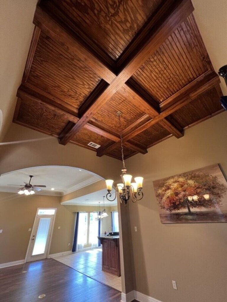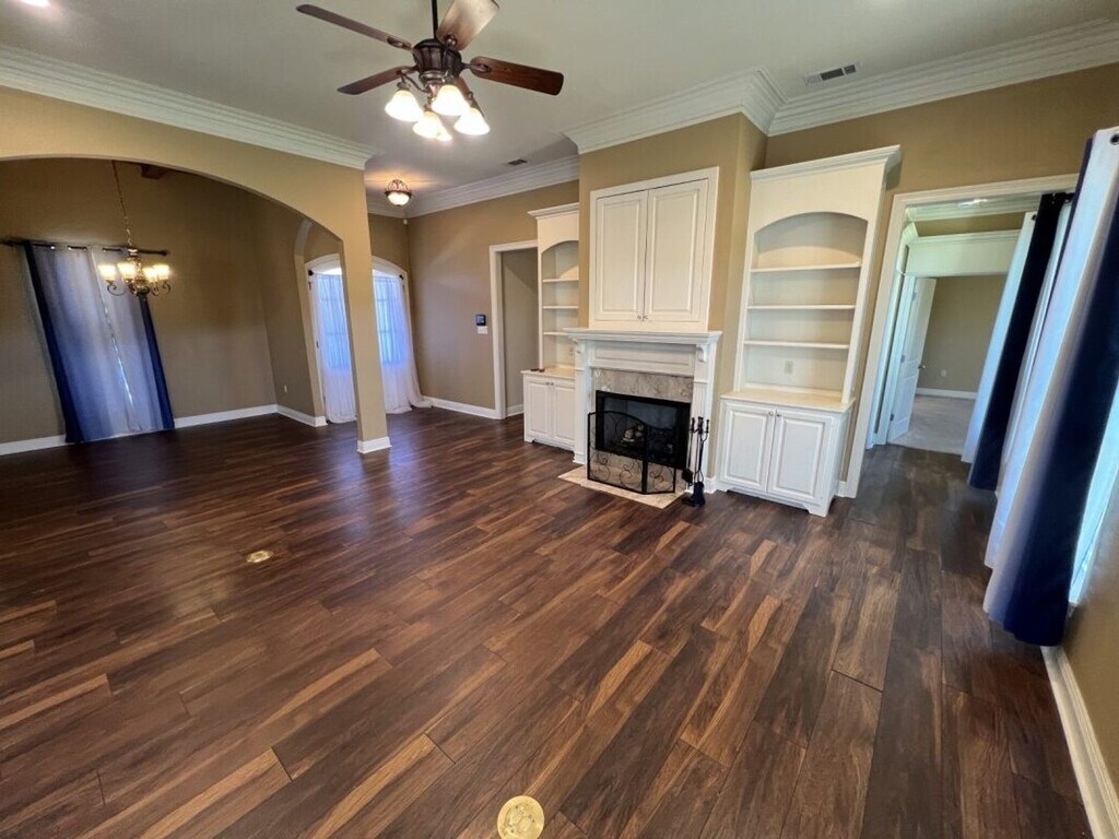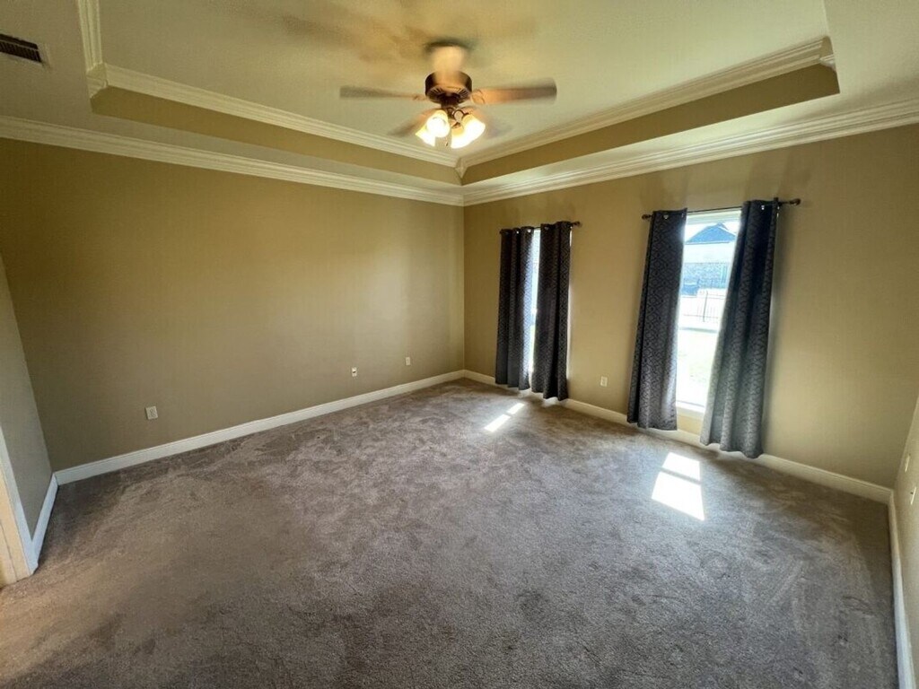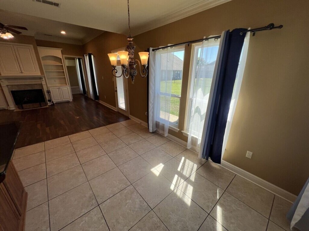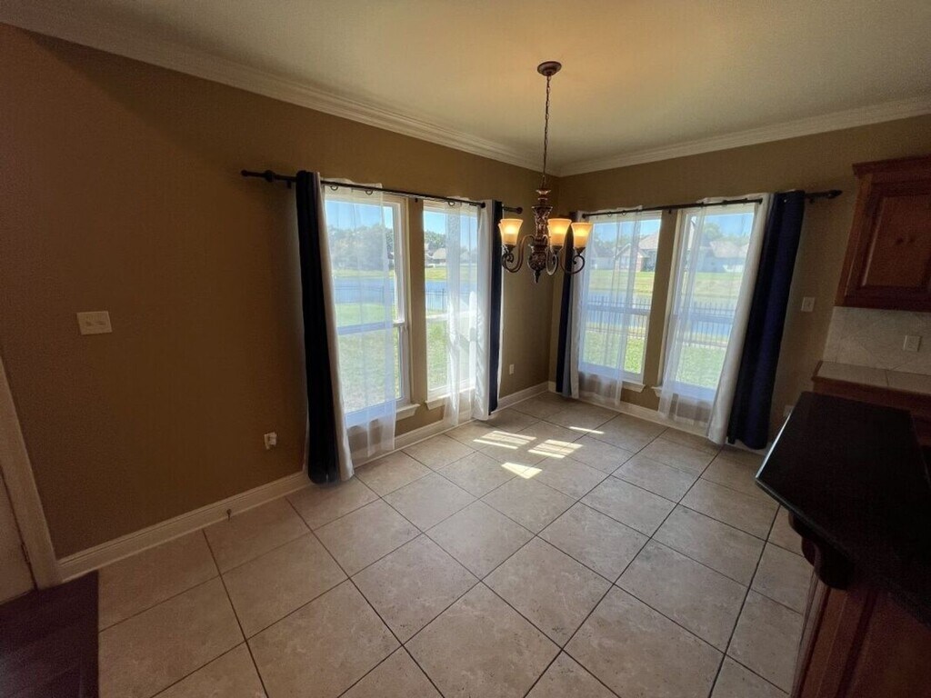 Location! Location! 4 bedroom, 3 bath, 2311 square foot home available in prime location. This beautifully design home backs up to stocked pond adorned with walking track, adjacent to the community pool and clubhouse. This home has a nice open/triple split floor plan with Kitchen/Dining and Living all flowing together. The Kitchen is accented with cypress cabinets, cooking island w/breakfast bar, gas cooktop, built-in microwave, gas oven, refrigerator/freezer, and slab granite counters. The Living Room is anchored by built-ins on either side of the fireplace and mantle with space to mount television. The dining room is adorned with a uniquely designed beamed, beadboard ceiling. Spacious Master Suite accented with recessed ceiling and fan. Master suite equipped dual vanities, granite counters, walk-in closet, Jacuzzi Tub, stand alone shower, and private toilet. This home loaded with amenities also includes a carpeted, multi-purpose bonus room that sits off the garage equipped with exterior exit door. Enjoy mornings and evenings on the covered back porch that overlooks a large fenced backyard and stocked pond encircled by a walking track. A 2nd stocked pond encircled by a walking track sits just across the street. Hurry! This beautiful property, loaded with amenities will not last long!
