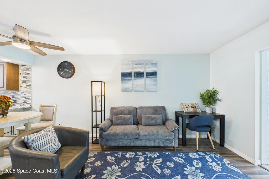 Welcome to your home away from home! This cozy 2-bedroom,2-bathroom condo offers everything you need for a comfortable stayperfect for traveling professionals,remote workers,or those relocating to the Space Coast. Watch rocket launches right out of your window as an added bonus! 🛏 Unit Features: Fully furnished,turnkey-ready Spacious bedroom with queen bed and large closet 2nd bedroom has a full AND twin bed with dual closets Modern kitchen with full-size appliances,cookware,and essentials Comfortable living area with smart TV and dedicated workspace In-unit washer and dryer Private Florida Room for morning coffee or evening relaxation 🌞 All-Inclusive Amenities: Utilities (electric,water,trash,wi-fi,and cable) included High-speed WiFi Free on-site parking with assigned parking space Access to community pool Quiet,well-maintained complex 10 mins to Kennedy Space Center Walking distance to Titus Landing