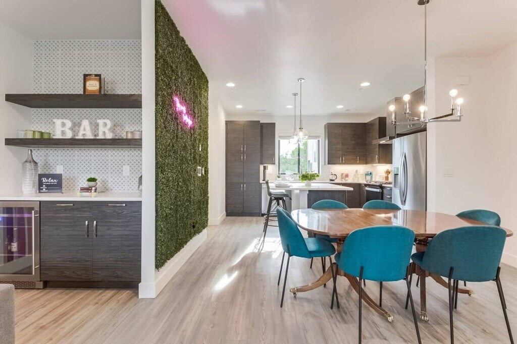 Welcome to this stylish 2-bedroom, 2.5-bath townhouse in Denver, offering mountain views from the rooftop deck. Feel at home in this beautifully designed space, blending style, comfort, and convenience. This townhouse features an open-concept layout with stylish furnishings, a smart TV, and high-speed Wi-Fi. The fully equipped kitchen includes everything needed for cooking, along with a coffee station. Enjoy the private rooftop deck with mountain views, a cozy hammock, outdoor seating, games, and a gas grill. Guests have access to a private 2-car garage with a Level 2 EV charger. While not in a walkable neighborhood, this centrally located home offers quick access to downtown, Regis University, and major roads. This home is not pet-friendly due to severe allergies. If a guest with a service dog cannot find other accommodations, they should notify us ahead of time. Evidence of smoking inside the home will result in odor removal and furniture cleaning fees of $500. Quiet hours are from 10 pm to 8 am. Checking out late without approval may result in an additional charge. You must be 21 or above to be a primary guest. This home has a doorbell camera for security reasons. Check-in is at 4 pm and check-out is at 11 am. [SI]
