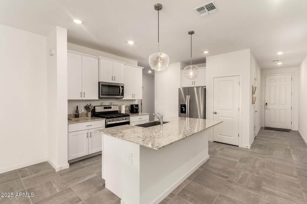 AYANNA HAWKINSNO APPLICATION FEES! Try Before You Buy! This practically new 3-bed, 2-bath home offers a spacious kitchen with a large island, white cabinets, granite countertops, and beautiful tile flooring with cozy carpet in the bedrooms. The well thought out split floor plan allows privacy for all occupants - with no residents having to share a common wall. Bonus feature of the home is an open den area - perfect for a home office, play area, or workout room. Washer, dryer, and refrigerator included! Located in a friendly, gated community with an amenity center featuring a pool with splash area, neighborhood parks, a sport court and coming soon - a community gym. Energy-efficient design for savings and comfort. Perfect way to test out homeownership.