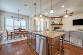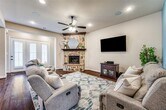 Welcome to this stunning Highland Home in the heart of The Tribute-a premier Lakeside Resort and Golf Community that blends upscale living with resort-style amenities. This one-of-a-kind home boasts 5 bedrooms, 6 full bathrooms and over 4,000 sq ft of elegantly appointed space. Upon entering you'll be greeted by timeless solid hardwood floors, plantation shutters, and soaring ceilings that enhance the home's warm and inviting ambiance. The main level offers two bedrooms, ideal for multigenerational living or guest accommodations. The kitchen features a large island, expansive granite countertops, built-in desk, walk-in pantry and an effortless flow into the living and casual dining areas. The stone fireplace anchors the living area with cozy charm, perfect for relaxed evenings or entertaining in style. The primary suite is a private retreat, complete with a sitting area and a spa-like ensuite bathroom. The bath features a soaking tub, dual vanities, a makeup vanity, generous walk-in closet and a separate linen closet, with elegant glass-front cabinetry that adds beauty while offering additional storage. Upstairs you’ll find an expansive game room, media room and a built-in dry bar with mini-fridge—the ultimate setup for entertaining. Built-in desks with shelving provide the perfect space for homework or crafting. Three more ensuite bedrooms each offer distinctive design touches and ample privacy. The home office adorned with French doors, offers a quiet and stylish space to work from home. Step outside to your covered back patio with a gas fireplace—ideal for evening gatherings under the stars. The spacious backyard has plenty of room for a future pool, play set or custom outdoor living space to match your lifestyle. Tribute residents enjoy resort-style pools, miles of scenic trails along Lake Lewisville, two golf courses, year-round community events and a marina is underway. This is more than just a home—it’s a lifestyle. Live the luxury you deserve at The Tribute.