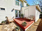This East Side cottage puts you right in the action—minutes from downtown, Mueller’s beloved H-E-B, and the airport. Within your fenced, green oasis—think fort vibes—there’s an expansive yard with mature trees, a storage shed for the lawn chairs, covered carport, and extra parking—an ideal spread for outdoor entertaining. Inside, the first floor glows with recessed lighting, flowing from living to dining. The kitchen has polished neutral cabinetry, quartz counters, updated sink, refrigerator + timeless charm. A spacious bedroom opens to the yard—perfect for that morning coffee ritual. Upstairs, you’ll find brand-new carpet, a second living space, a second full bath, and an expansive second bedroom. And tucked in the back corner, a secluded deck leads to a convenient exterior closet with a stackable washer/dryer. This flexible, charming floor plan - complete with recently updated roof and exterior siding - awaits its next tenant! MLS ID 4749582