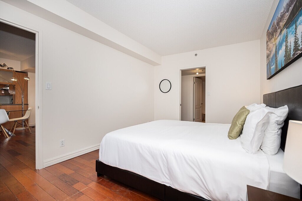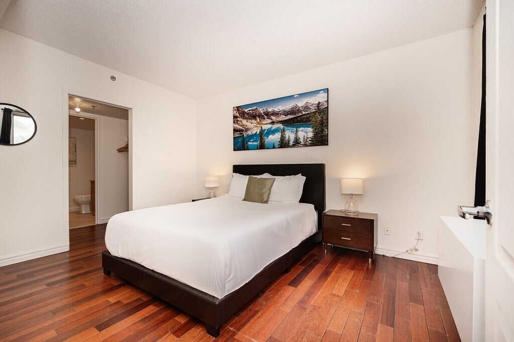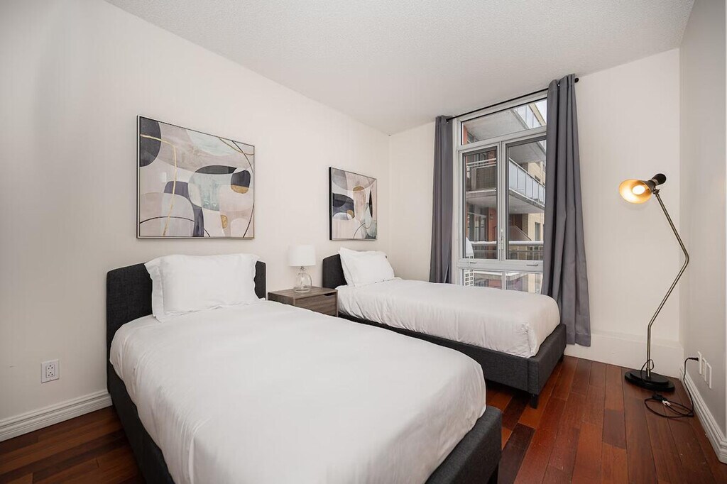 Nestled in a dreamy setting, this apartment offers an irresistible blend of tranquility and urban vibrancy. Its prime location boasts breathtaking waterfront views and easy access to Montreal's bustling city life. Strolling along the scenic paths of the Lachine Canal, you can enjoy a delightful fusion of nature and culture, with attractions such as the renowned Atwater Market just moments away. This welcoming space accommodates four guests with two bedrooms featuring a queen bed and two single beds, along with two full bathrooms. The apartment is designed to be as welcoming and cozy as possible, featuring a smart TV for your viewing pleasure and high-speed Wi-Fi to stay seamlessly connected throughout your stay. Indoor parking with in and out privileges is available for an additional fee, which varies depending on your length of stay. A variety of cleaning services, including biweekly or monthly, are also offered for an extra charge. The apartment's prime location offers breathtaking waterfront views and easy access to Montreal's bustling city life. Enjoy strolling along the scenic paths of the Lachine Canal and experience a delightful fusion of nature and culture, with attractions such as the renowned Atwater Market just moments away. No parties of any kind or loud noises that can alter the harmony of residents are allowed. Smoking of any kind, including cannabis and cigarettes, is prohibited inside the apartment, balcony, or the building. Please care about your home away from home. [SI]
