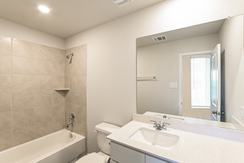 Welcome to The Pinewood,a single-story home offering 3 spacious bedrooms,2 full baths,and a bright,open-concept layout perfect for modern living. As you enter through the front door,you're greeted by a spacious family room that flows into the dining area and kitchen,complete with a walk-in pantry. The private primary suite is tucked away at the back of the home,featuring a walk-in closet and a private bath with dual sinks and a soaking tub. Bedrooms 2 and 3 are located near the front of the home,each with ample closet space and easy access to a full second bathroom. Additional features include wood-grain vinyl planks throughout,fully fenced yard with sprinkler system,and two car garage with garage door opener. All homes are SimplyMaintained for a $100 monthly fee that includes front and back yard lawn care and exterior pest control. Bluestem in Brookshire,TX offers a charming community with parks,greenspaces,and amenities like a pavilion,playground,and pickleball court. MLS# 63249425