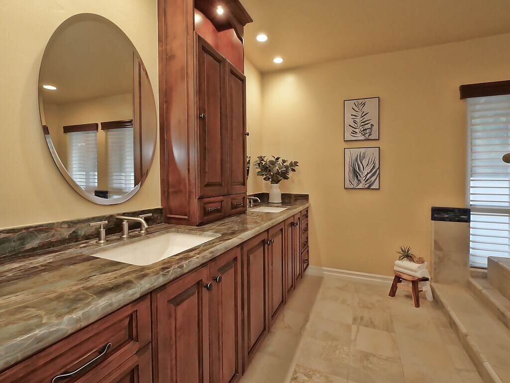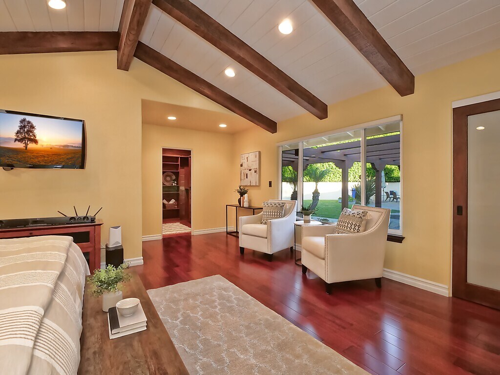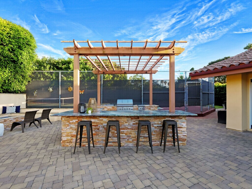 Welcome to resort living in Rancho Palos Verdes! This beautifully updated, furnished, immaculately cared for home offers luxury at its finest. From single level living to large outdoor spaces to entertain, this home is a renter's dream. A large primary suite offers a cedar covered walk-in closet, additional closets for storage, walk-in shower and jet tub, and dual sinks with plenty of counter top space. Three additional bedrooms, two updated bathrooms, formal dining room, living room with fireplace, large family room with open kitchen and breakfast nook, and a walk-in pantry and laundry room complete the indoor living. Each room offers plenty of natural light, privacy from outdoor vegetation, and high tech remote controlled blinds. Nano doors in the family room create an entertainer's paradise; offering seamless indoor-outdoor living. Enjoy an extra large built-in BBQ and marble top covered bar underneath a beautiful pergola. Take in the afternoon with a game of tennis or pickleball on the private tennis court or enjoy an evening under the stars by the outdoor fire pit. Large side yards are perfect for outdoor storage or for pets to stretch their legs. A three car garage offers convenience and practicality for high-end living. This is a rare and special home in PV!