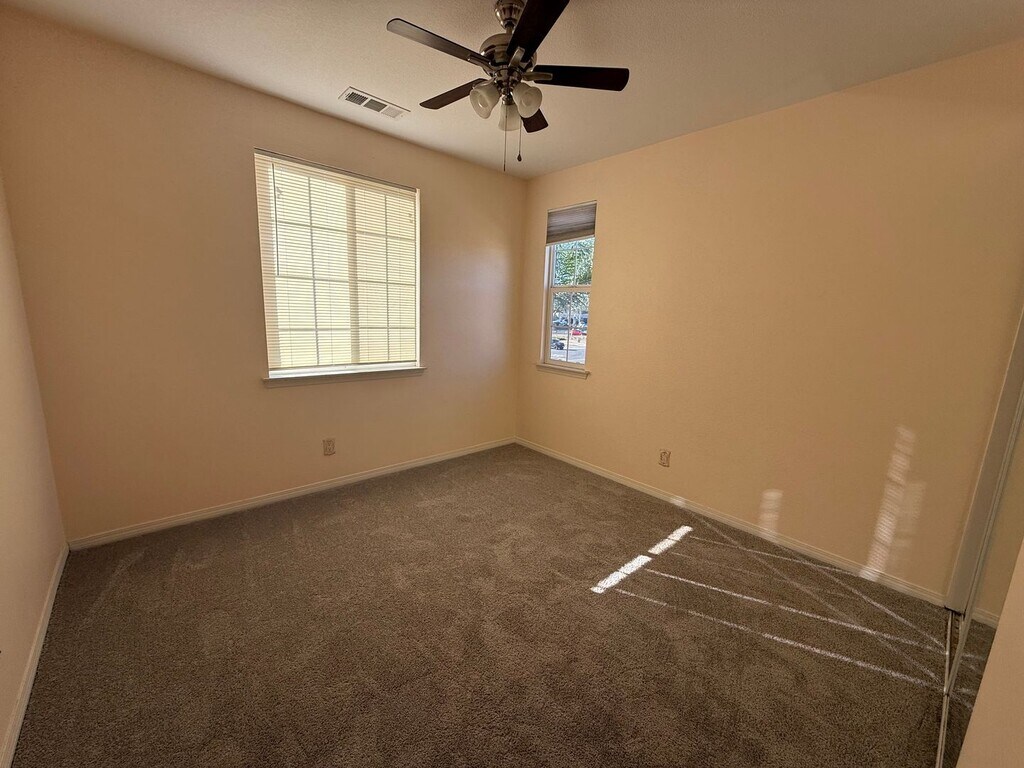 Welcome to your dream home in the heart of Menifee, CA. This stunning 3-story residence boasts 5 spacious bedrooms and 3 full bathrooms. The home is equipped with a smart thermostat, keyless front door entry, and smart plug-ins, ensuring modern convenience and security. The kitchen is a chef's delight with a walk-in pantry, granite countertops, and a kitchen island. It also comes with all kitchen appliances. The home features a mix of laminate and vinyl flooring, along with carpeting in the bedrooms for added comfort. On the third floor, you will find a loft that adds an extra space for relaxation or entertainment. In the primary room, you have a huge walk in closet, as well as his/her sinks. Also, the upstairs laundry hookups add convenience to household chores!! When you enter the home, you have two open areas for extra space or fine dining. As you walk into the open concept kitchen that faces the living room with a cozy beautiful fireplace. The house also features a 3-car garage and solar panels for energy efficiency. The property is part of an HOA community, offering access to a community pool/spa, park, and walking trails for outdoor enjoyment. Tenant will be responsible for the HOA monthly fees. The home is located within a secured gated entry, ensuring peace of mind. For more information and to schedule a showing, please call our office for Hayley at ext 202.