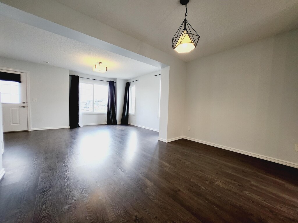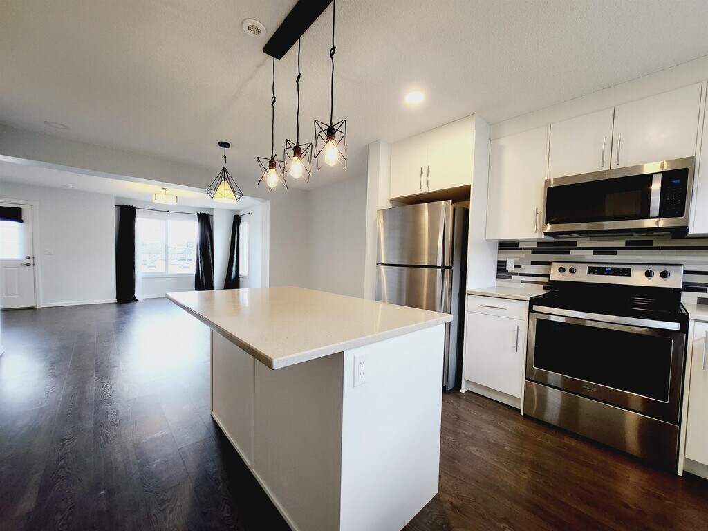 Discover your new family home in the welcoming community of Kirkness. This stunning 3-storey townhome boasts 3 bedrooms and 2.5 baths, offering approximately 1485 sq. ft. of living space. As a corner unit, it provides an abundance of natural light and is ready for you to move in. Upon entering, you are greeted by a versatile den on the first level, perfect for a home office, seating area, or play area. The second floor features an open and functional floor plan, ideal for family living. The spacious kitchen includes floor-to-ceiling cabinets, extensive counter space, and upgraded quartz countertops with a stylish tiled backsplash. A large island with an overhang provides additional seating and dining options, complemented by modern stainless steel appliances. Adjacent to the kitchen, you will find a separate dining area and a bright, spacious living room with large windows that open to a private balcony, perfect for enjoying the view of the neighborhood. This level also includes a half bath and a conveniently located washer and dryer, all set on durable vinyl plank flooring. The third level houses all three bedrooms and the main bath. The primary bedroom features a generous walk-in closet and a private 3-piece ensuite. The two additional bedrooms are well-appointed with ample closet space, sharing a functional and well-designed 4-piece main bath. Additional amenities include a double attached garage, providing convenience and extra storage. Kirkness is known for its family-friendly environment, with excellent schools, parks, and community services nearby. Enjoy the convenience of being close to shopping centers, dining options, and easy access to major roads and public transportation. Don't miss the opportunity to make this beautiful townhome your family's new sanctuary. Schedule a viewing today and experience the perfect blend of comfort, style, and community. Location: Family-friendly community of Kirkness. Size: 3-storey townhome with approximately 1485 sq. ft. Bedrooms/Bathrooms: 3 bedrooms, 2.5 baths. Den: Versatile space on the first level for home office, seating area, or play area. Kitchen: Spacious with floor-to-ceiling cabinets, extensive counter space, upgraded quartz countertops, stylish tiled backsplash, large island with additional seating, and stainless steel appliances. Living Area: Bright and spacious with large windows, opens to a private balcony. Dining Area: Separate dining space. Laundry: Washer and dryer located on the second floor. Flooring: Vinyl plank throughout the second floor. Primary Bedroom: Walk-in closet and private 3-piece ensuite. Additional Bedrooms: Two well-appointed bedrooms with ample closet space. Bathrooms: Functional 4-piece main bath and additional half bath. Garage: Double attached garage. Community Benefits: Close to schools, parks, shopping centers, dining options, major roads, and public transportation.