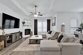 Luxury single-story living on an oversized lot in Aubrey! Experience exceptional quality in this open concept 4-bedroom, 2-full bath home featuring the builder's higher-end finish out and an impressive exterior elevation The residence boasts soaring 10-foot ceilings throughout with sophisticated architectural elements like tray ceilings in the entryway, family room, and primary bedroom. The heart of the home is the gourmet kitchen, equipped with 42-inch upper cabinets, quartz countertops, a large island, and a farmhouse sink. The private primary suite offers a luxurious ensuite bath with dual sinks and a separate tub and shower. Situated on a generously sized lot perfect for a pool or backyard entertaining, this move-in-ready home also includes a private fenced backyard and a 2-car garage conveniently located near the second community pool. Silverado offers an array of amenities, including walking trails, ponds, a community center with a resort-style pool, splash pad, and outdoor grills, and basketball and pickleball courts.