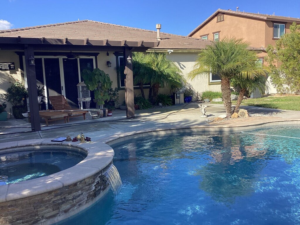 UPGRADED!! UPGRADED!! UPGRADED!! This Stunning Single Story Pool Home, in Murphy Ranch, Boasts 3 Bedrooms, 3 Baths, plus a 3-Car Garage. This Impressive Executive Home offers an Open & Bright Entry w/ a Formal Living Room and a spacious Family Room! The Open Concept Family Room and Gourmet Kitchen features Quartz Countertops, Stainless Steel Appliances and a Huge Island with Bar Seating. This Kitchen also has a Pantry, for your extra Storage needs! Mom will enjoy her Large Owners Suite with a spacious Walk-in Closet. The Master Bathroom has a Vanity Area, with Dual Sinks, a Large Luxurious Soaking Bathtub and a Large Separate Shower, all Customized and Beautiful. Other features of this Home include: Gorgeous Custom Wood and Upgraded Premium Tile Flooring throughout the home, Custom Paint, Custom Plantation Shutters, Recessed Lights, and a Laundry Room with a Large Sink and plenty of room for Folding Laundry. For SUMMER FUN, step outside onto your Covered Patio, where you’ll be able to sit and enjoy your Meticulously Maintained Backyard with a Large Custom Pool! This Large Lot Boasts a Gorgeous Custom Stone Pool & Spa, with Waterfall, and is an Expansive Private Sanctuary, perfect for your Birthday Parties & Barbecues! There are Lush Palm Trees, Hardscaping and well-kept Grass, for Lower Maintenance. The Murphy Ranch Community offers Kids Parks & Play Areas, Picnic Areas, as well as Pickleball Courts, Tennis Courts, Pools and Movie Night w/Free Food like Pizza, to boot! Close to Shopping & Freeways! Once you see it, you’ll know you’ve found your HOME! Don't miss this Opportunity!!