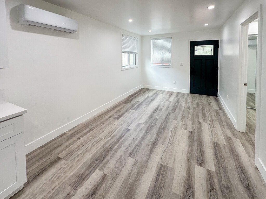 Beautifully remodeled upstairs unit in a quiet Boyle Heights triplex. Everything is brand new. The home has wide-plank hardwood floors, recessed lighting, and a bright, simple layout. A major upgrade here is the three mini-split AC/heat systems one in the living room and one in each bedroom. Most units this size only have a single wall unit, so this setup keeps every room comfortable and gives you better control over energy use. The kitchen has white shaker cabinets, quartz countertops, and brand-new stainless appliances. The bathroom features a tiled walk-in shower, a modern vanity, and matte-black hardware. Both bedrooms include mirrored closets. Tenants also get FREE WiFi, which makes move-in that much easier. The shared yard offers seating, grass, shade, and access to a high-end Miele washer and dryer set housed in a secure shed. Parking: There are no designated parking spots on the property, but street parking is plentiful and easy to find on this block. Location highlights: Quick access to the 5, 10, 60, and 710 freeways Minutes to the DTLA Arts District, Little Tokyo, and nearby Metro stations Close to Guisados, Un Solo Sol, Primera Taza Cafe, and local food trucks Near Hollenbeck Park, Mariachi Plaza, markets, and small neighborhood shops Schedule a tour today! All adults 18 year and older must submit separate applications. Application fee is $45 per applicant. One year lease required. Security deposit determined after application is submitted and credit/background check completed. Minimum deposit is equivalent to 1 months rent for tier 1 credit and approved applications. Renters pays all utilities. WiFi included for FREE! Property is no smoking. Square footage is an estimate and applicants are encouraged to verify square footage. Pet policy: One (1) small dog or two (2) cats OK. Street parking only but parking is plentiful and easy to find. Approval is based on a holistic model that takes into account the applicant's credit score, income amount, income history, landlord references, savings, historical bank balances, rental history, and move-in date availability. Generally, a combined gross (before tax) monthly income of $5,620 and credit scores above 680 are preferred, but credit and income are not the only factors we take into consideration.